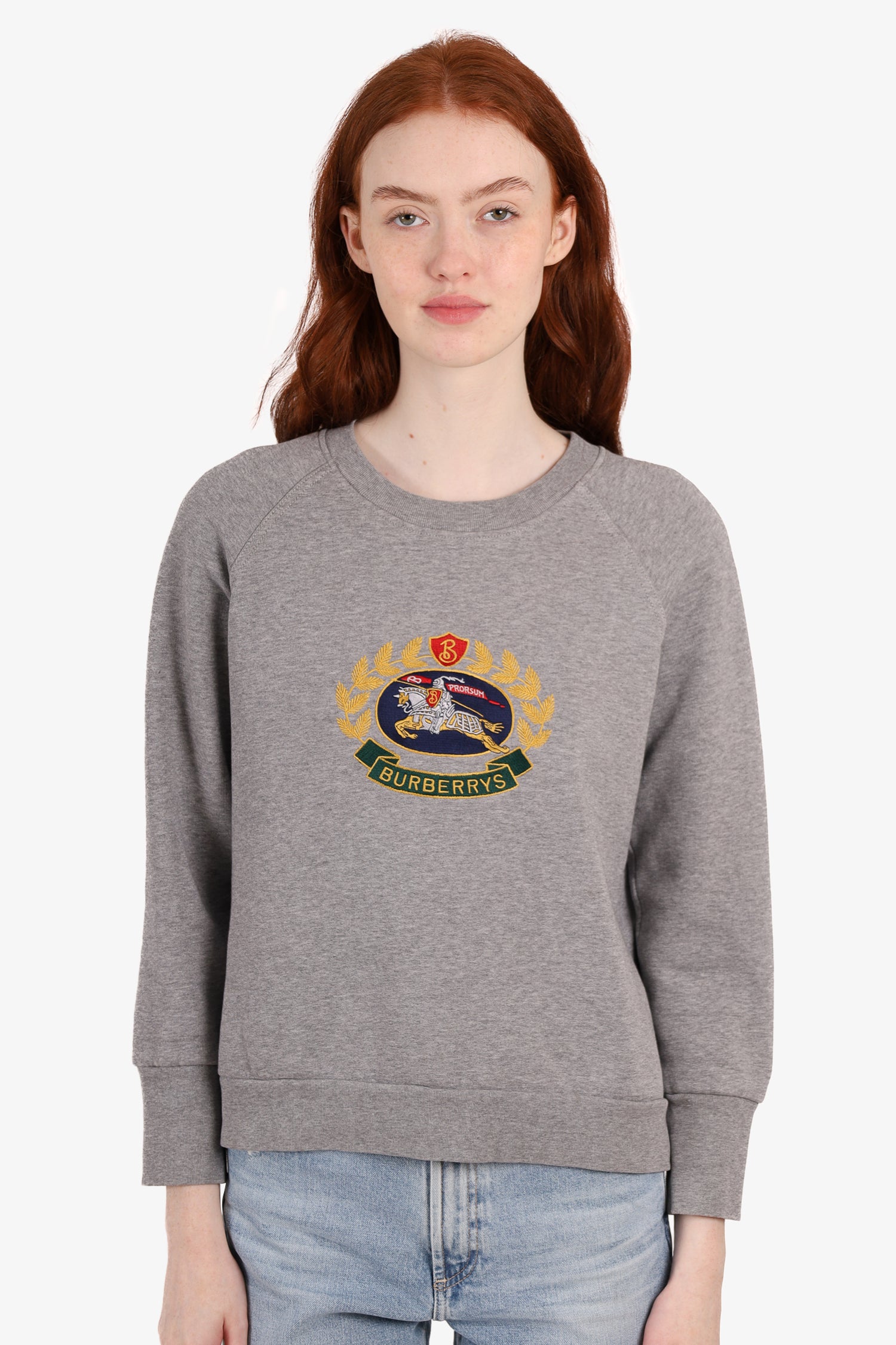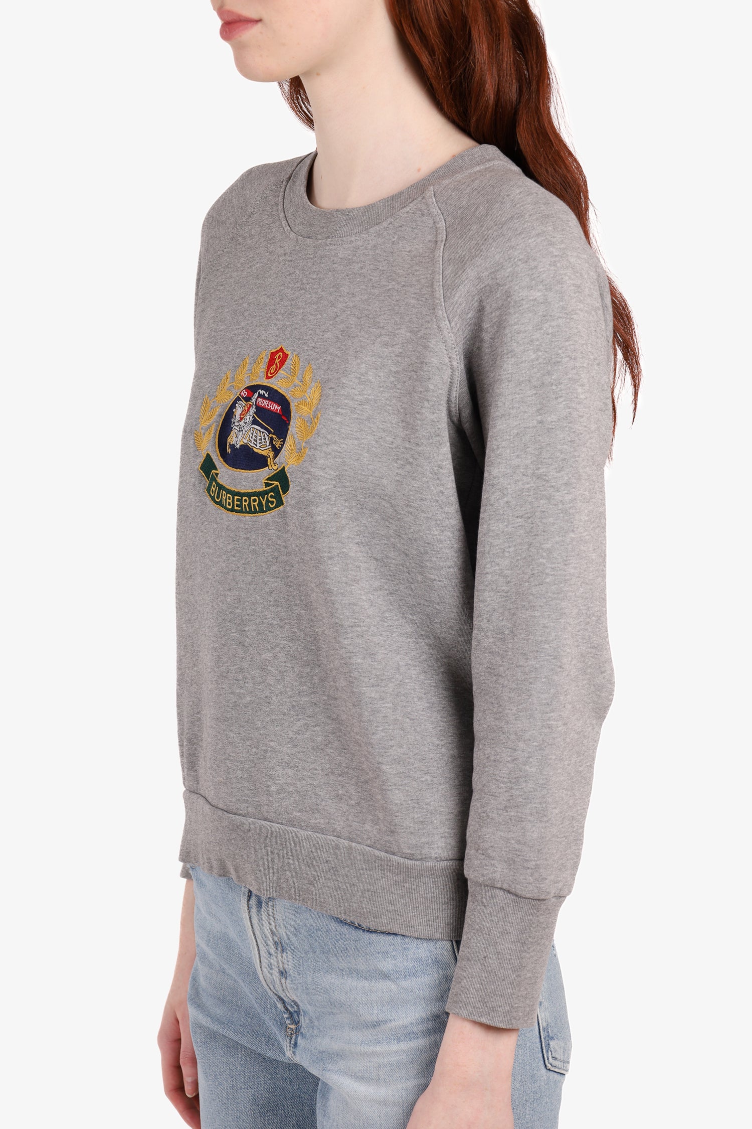 Refresh availabilityBurberry Grey Cotton Embroidered Archive Logo Sweater. Round neckline. Ribbed sleeves & hem. Tonal stitching.