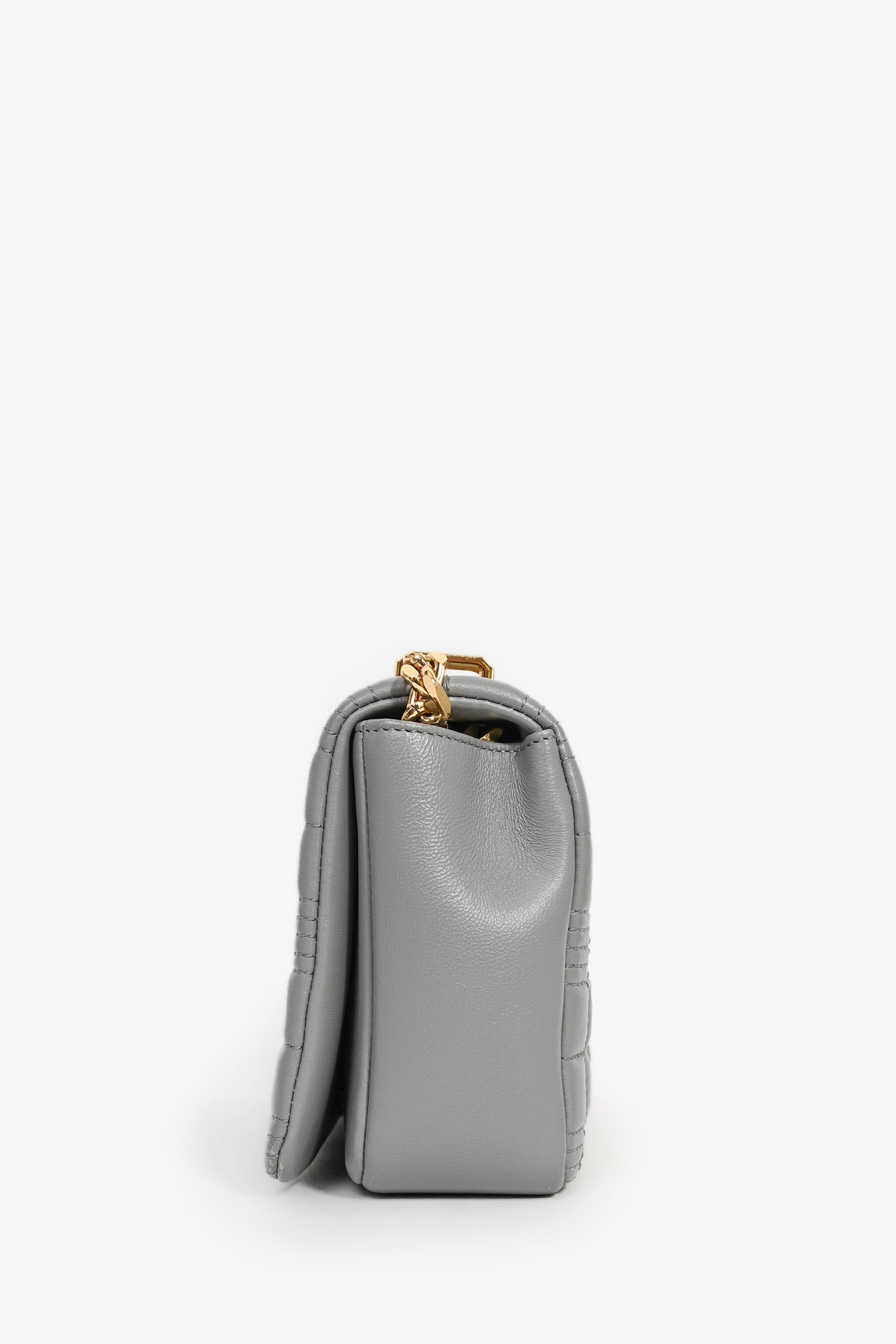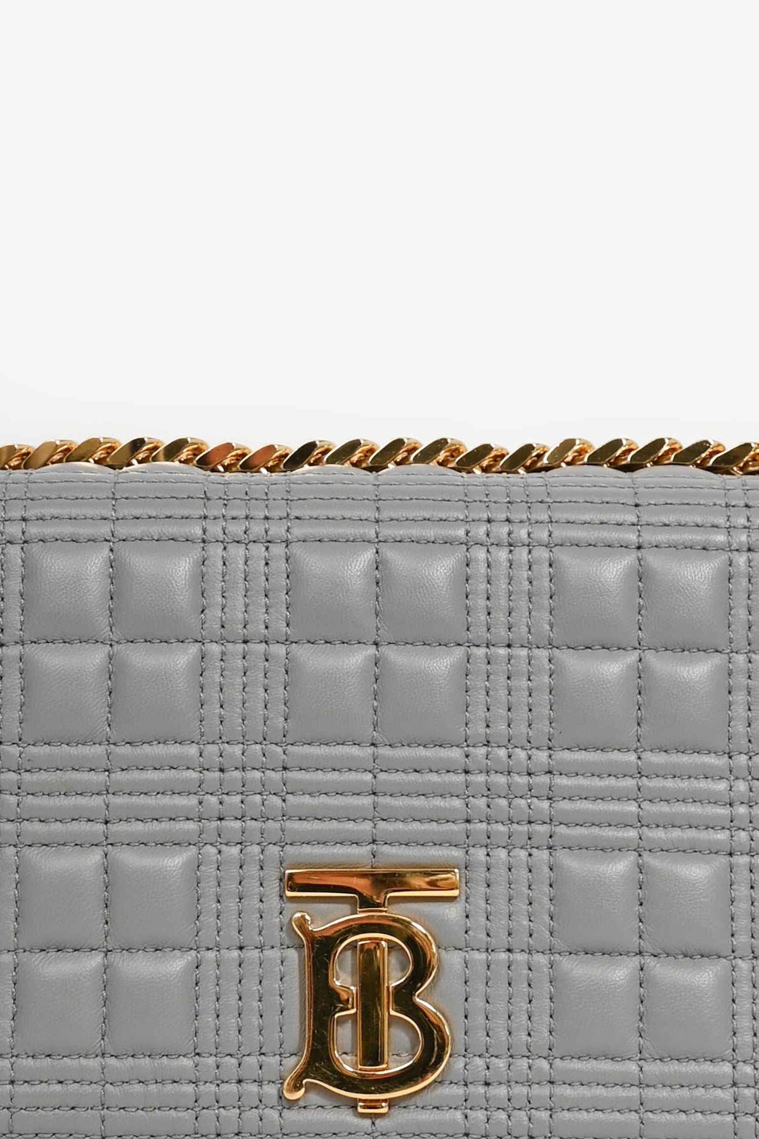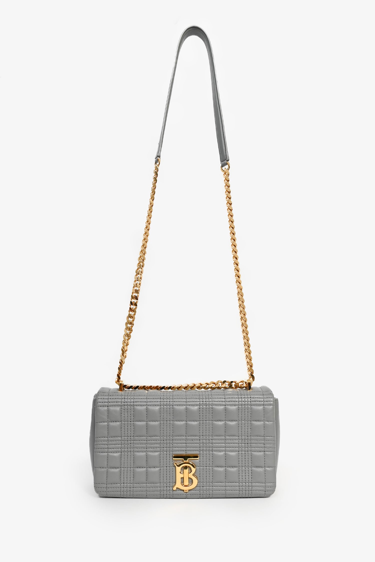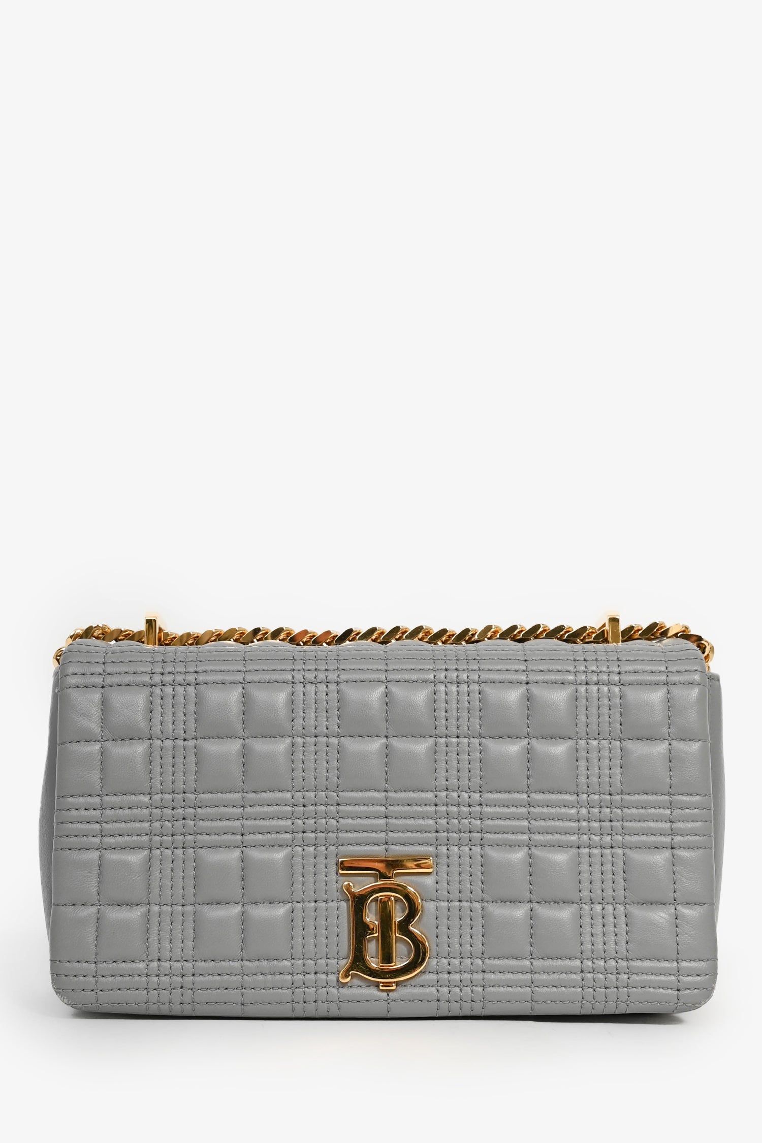 Burberry Grey Leather Quilted TB Logo Lola Flap Crossbody
