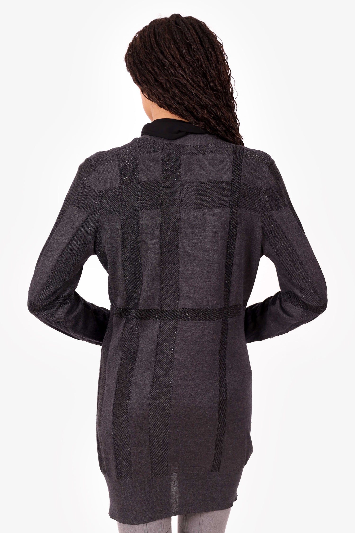 Burberry Grey Metallic Silk Knit Long Cardigan size L