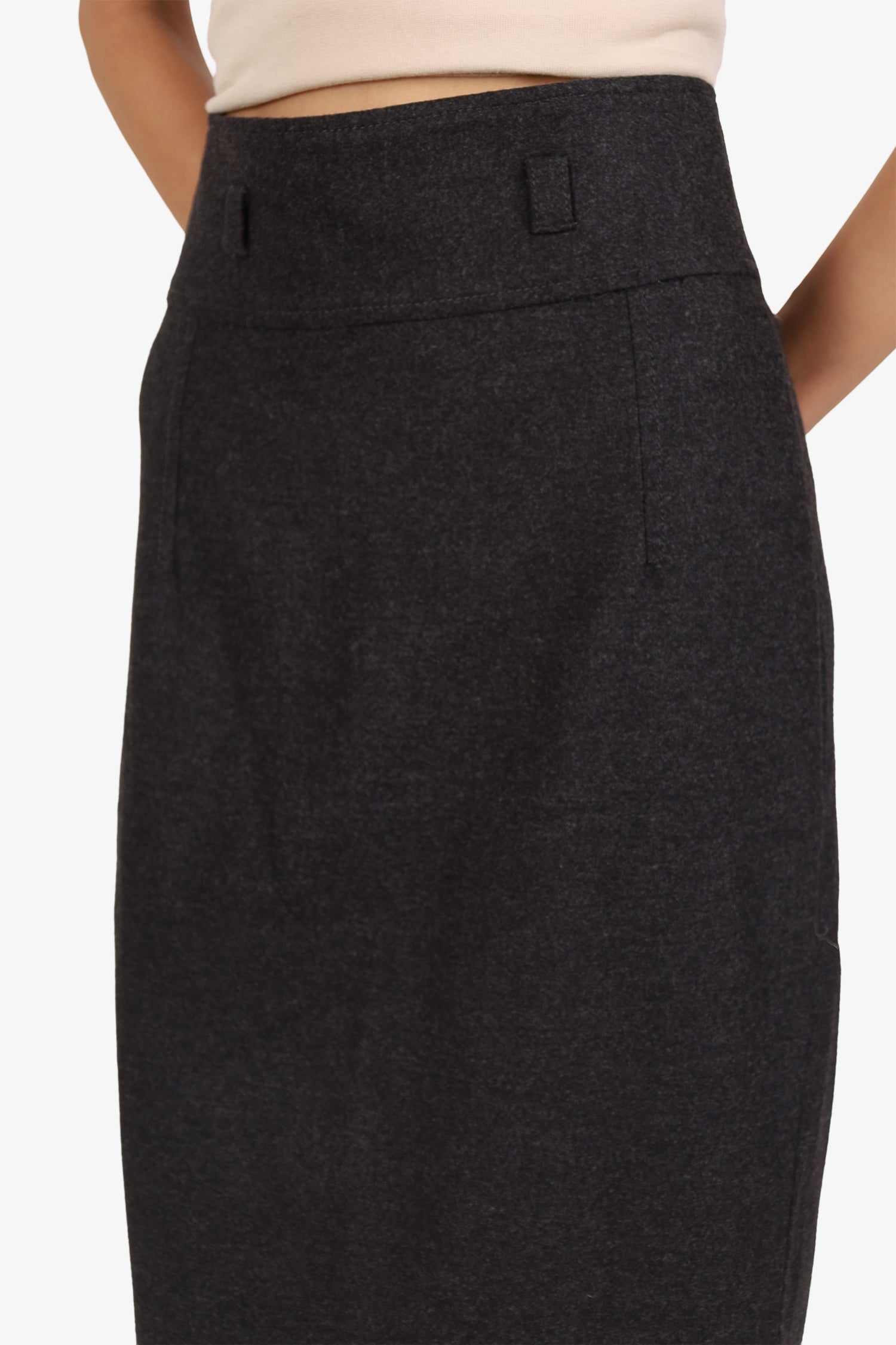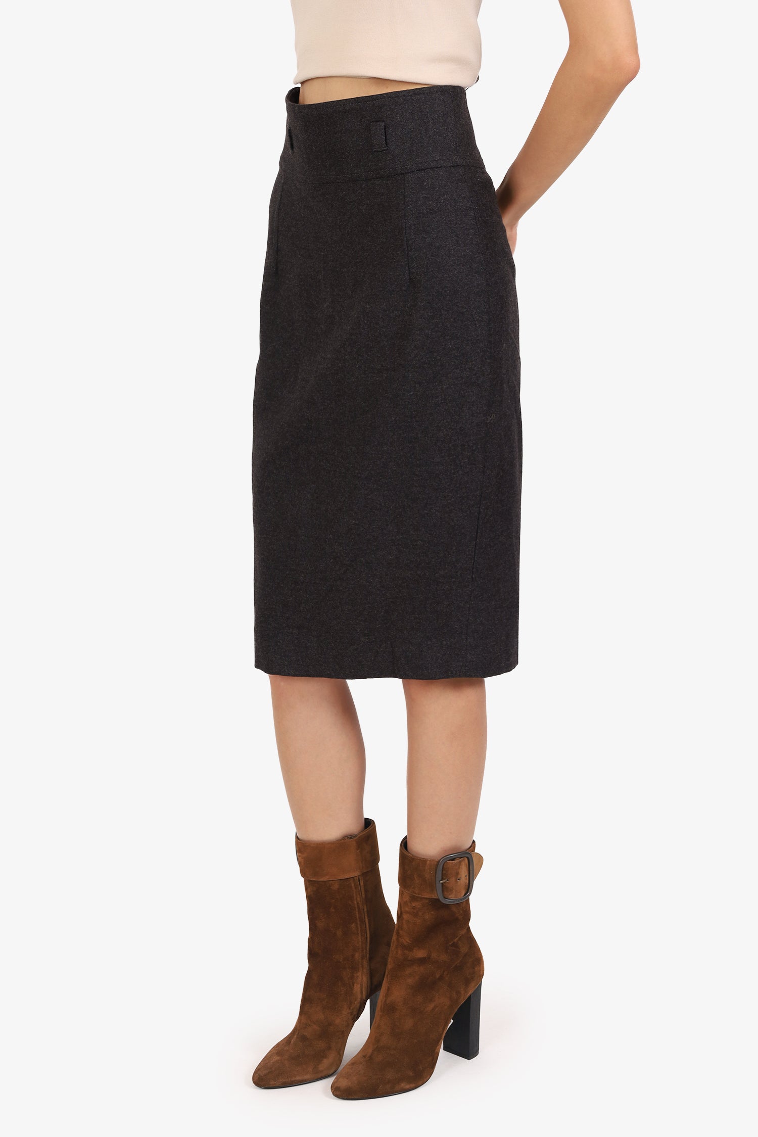 Refresh availabilityBurberry Grey Wool Midi Skirt. Slip-on. Rear zip closure. Waistband belt-loops. Rear slit. Lined interior. Tonal stitching.