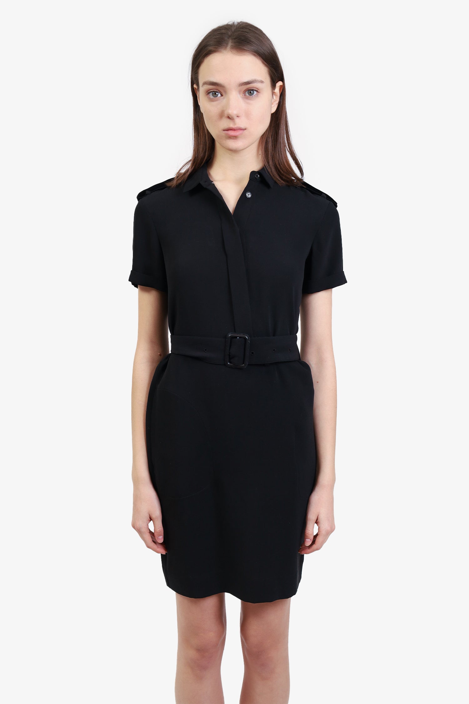 Refresh availabilityBurberry London Black Silk Belted Collar Short-Sleeve Dress. Front button closure. Front slip pockets. Epaulettes. Tonal stitching