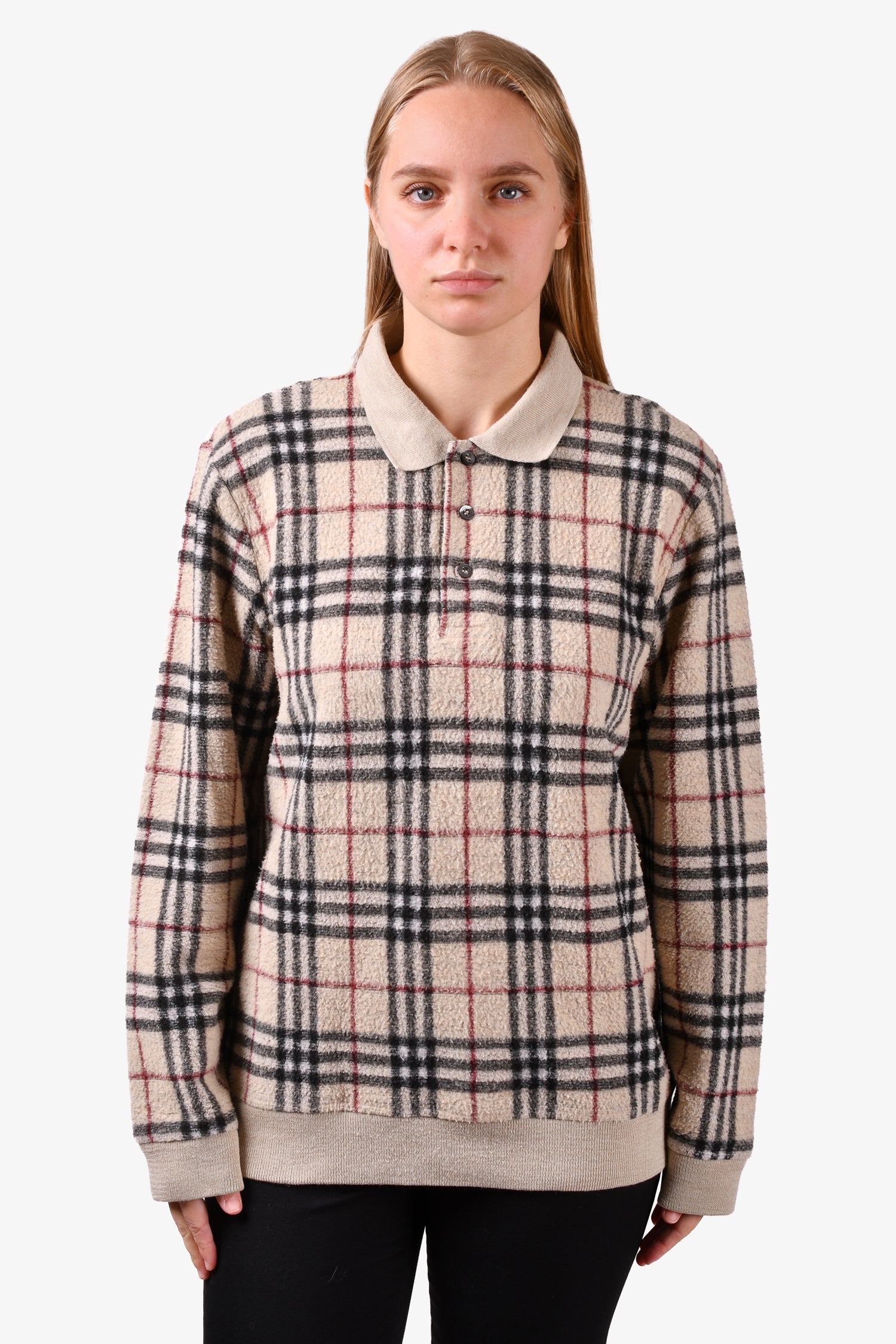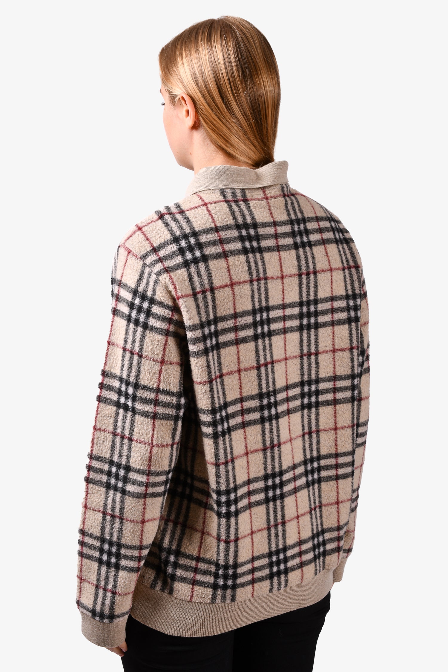 Burberry London Fleece Collared Nova Check Sweater Size M