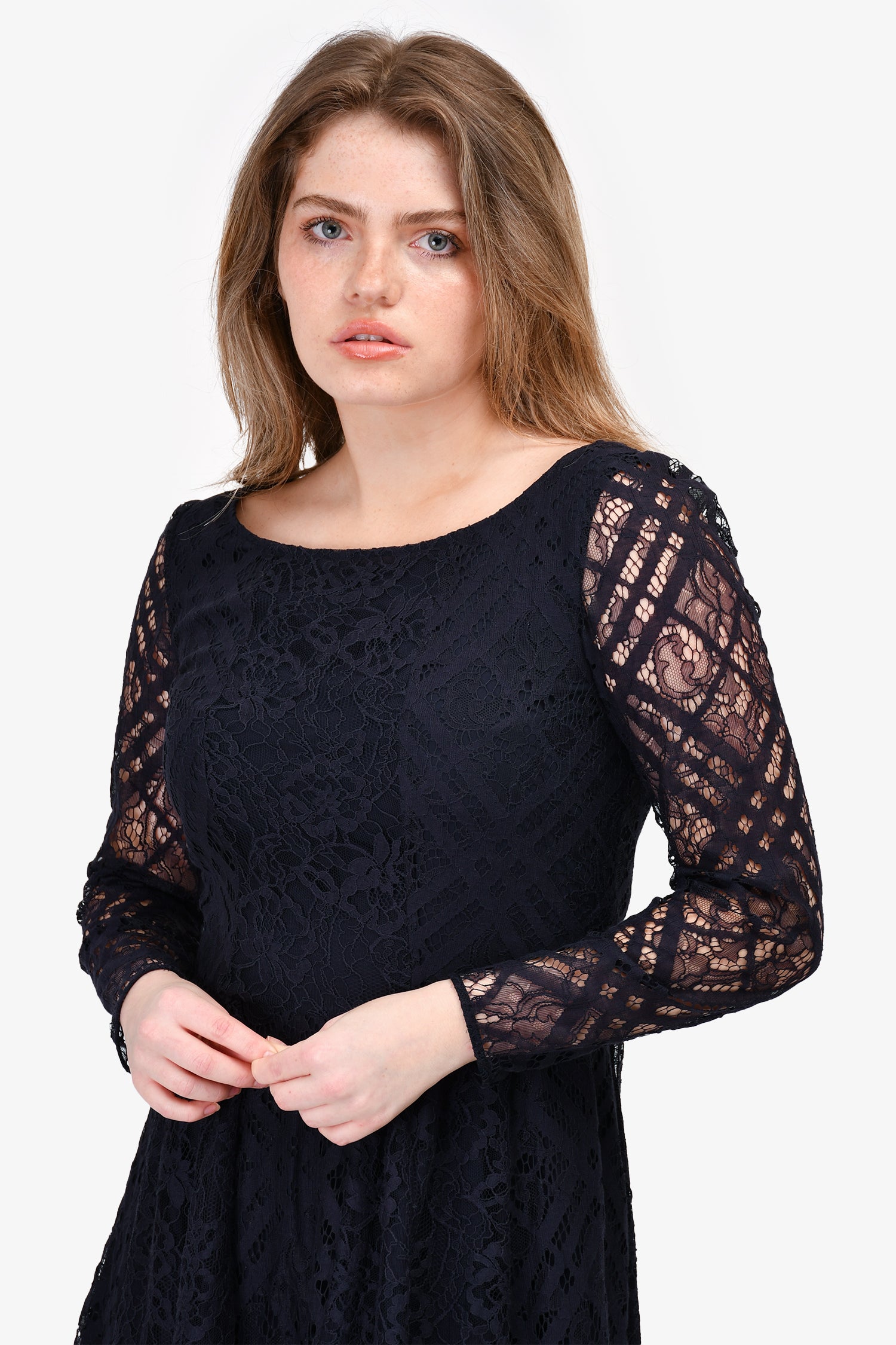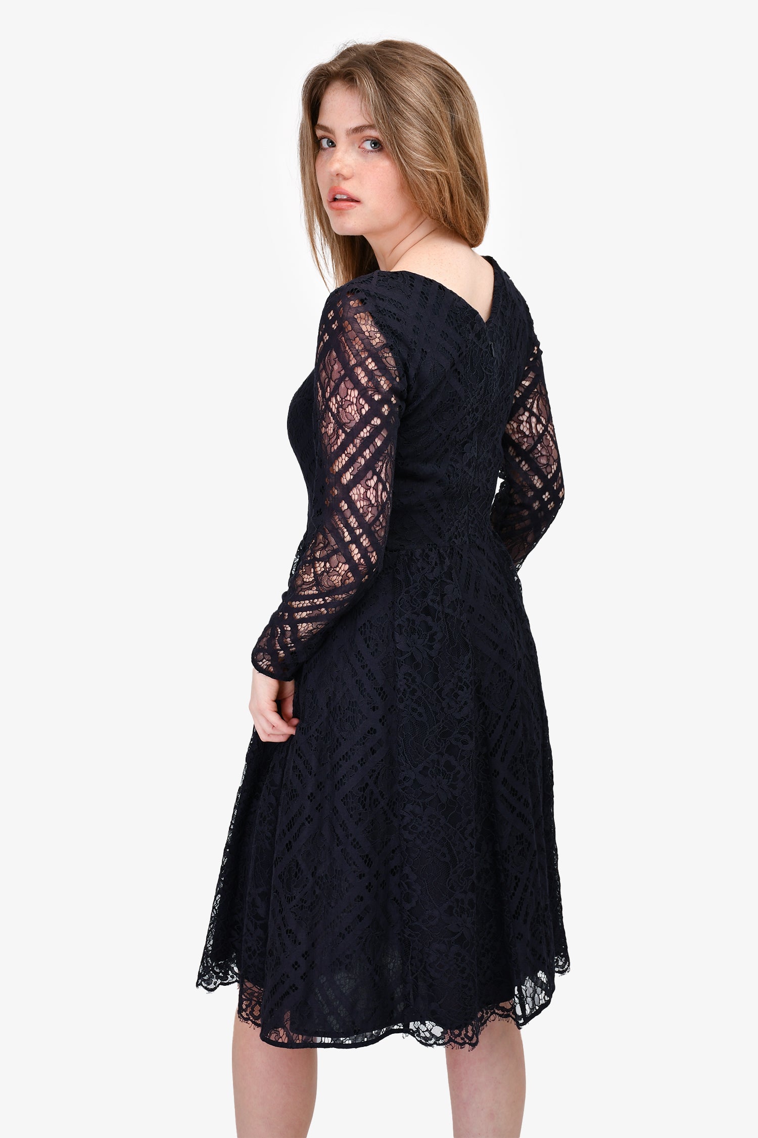 Burberry London Navy Blue Lace Long Sleeve Dress Size 6 US