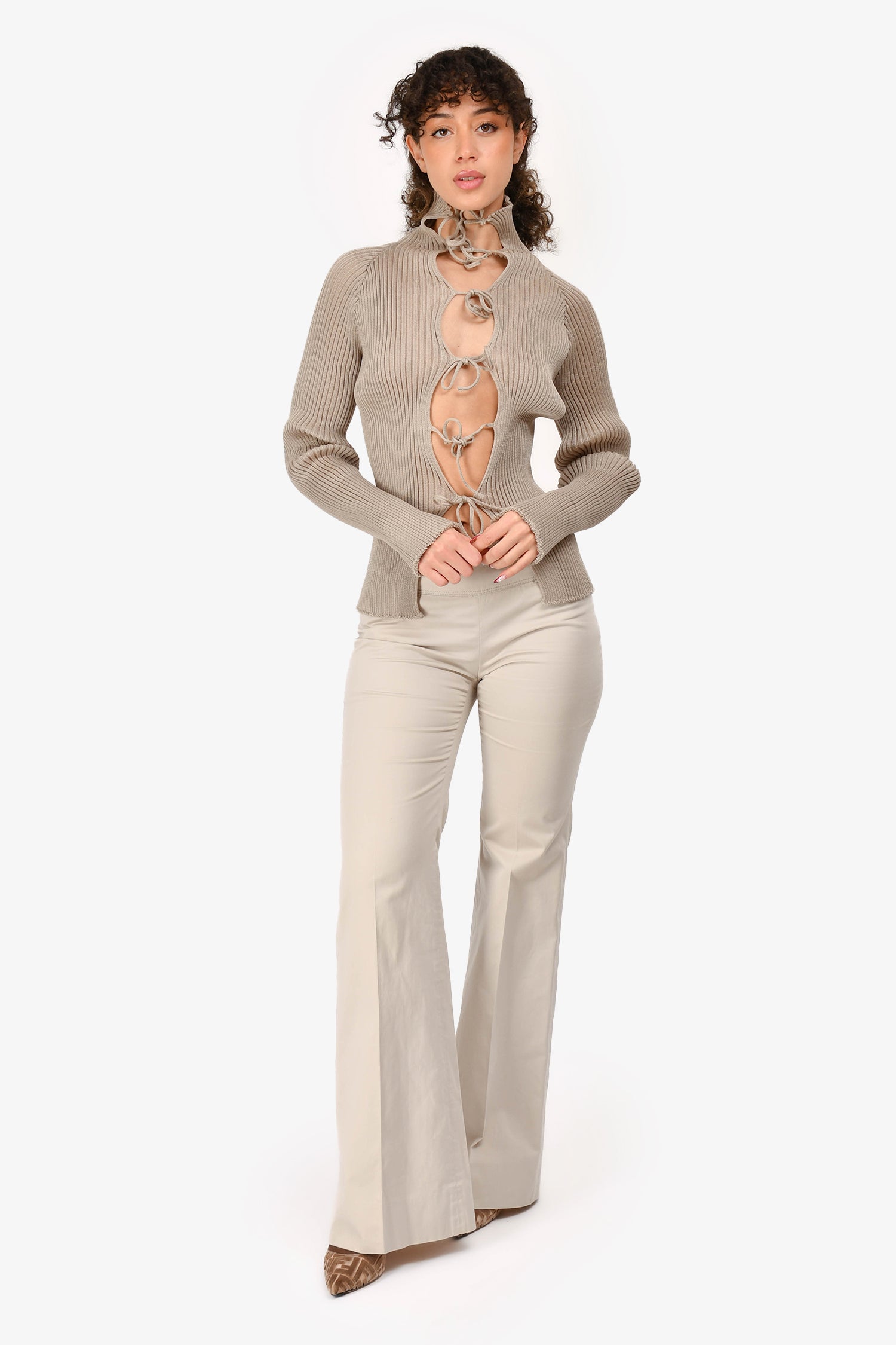Burberry London Tan Cotton Mid-Rise Wide Leg Trousers Size 4