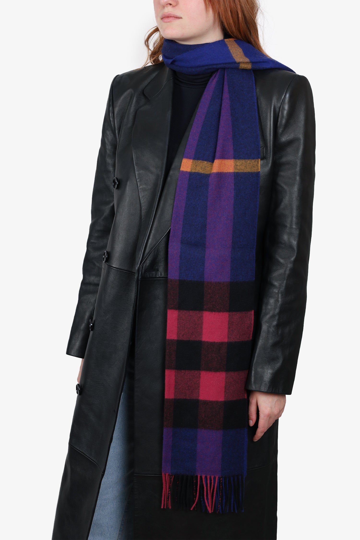 Burberry Multicolour Cashmere Check Fringe-Edge Scarf