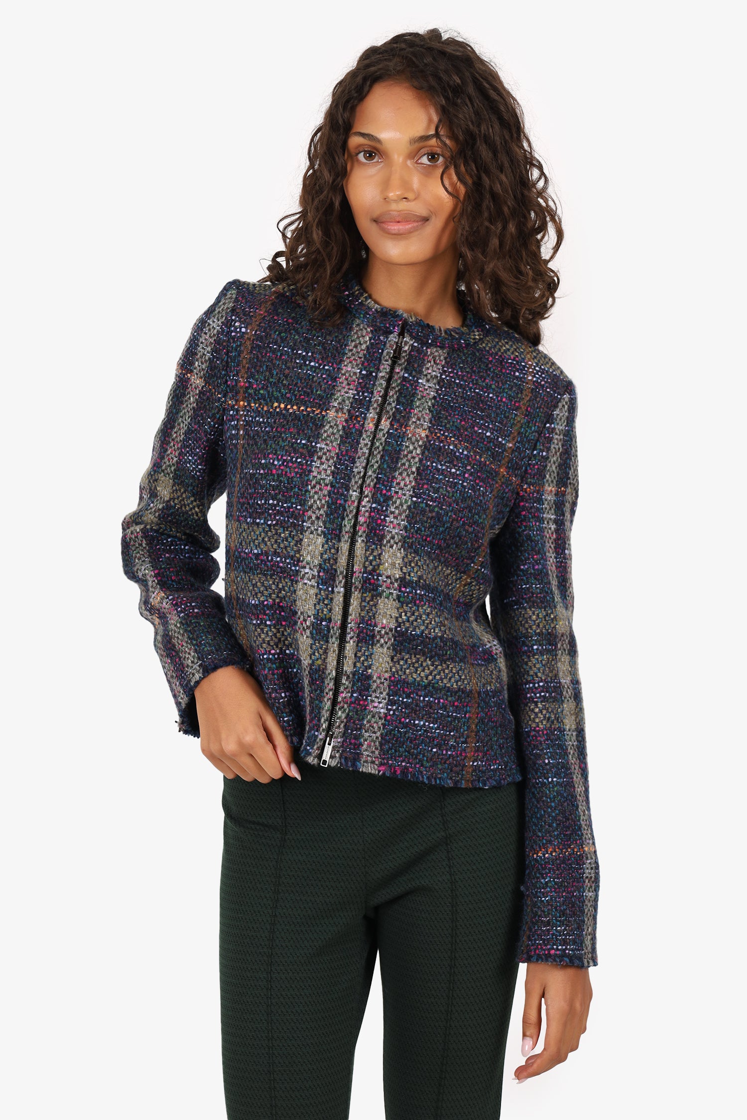 Burberry Multicolour Tweed Zip-up Jacket Size 8