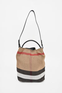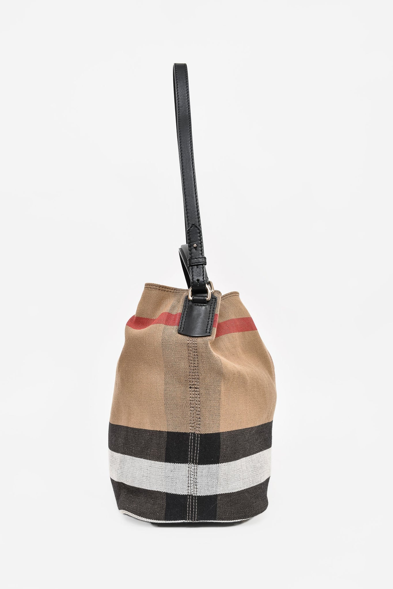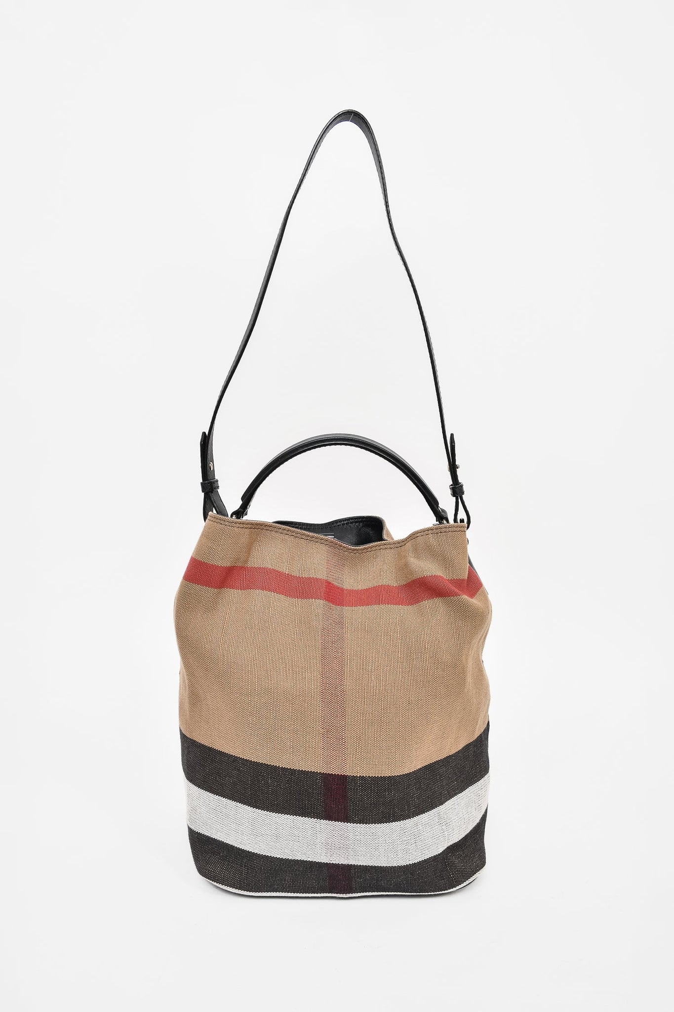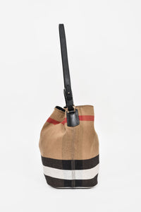 Burberry Nova Check Linen/White Leather Ashby Bucket Bag