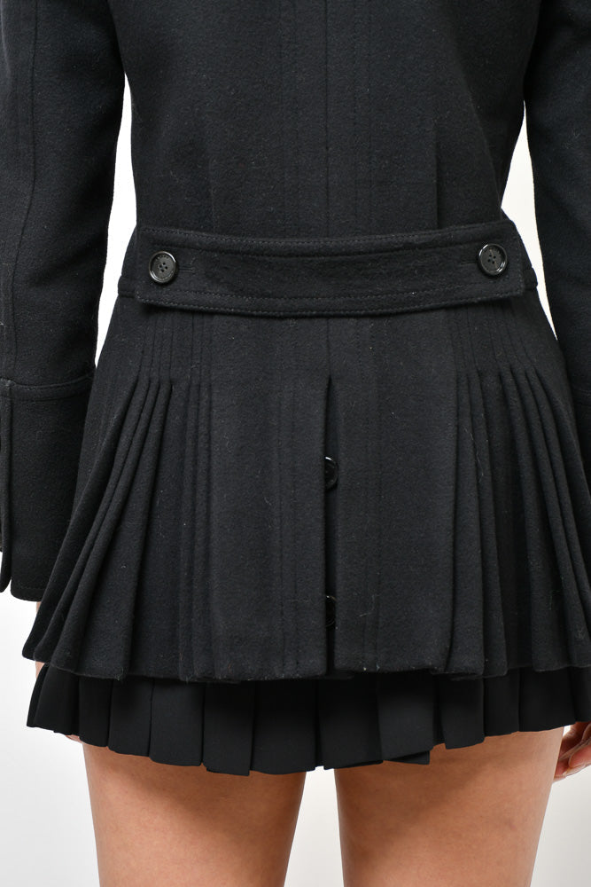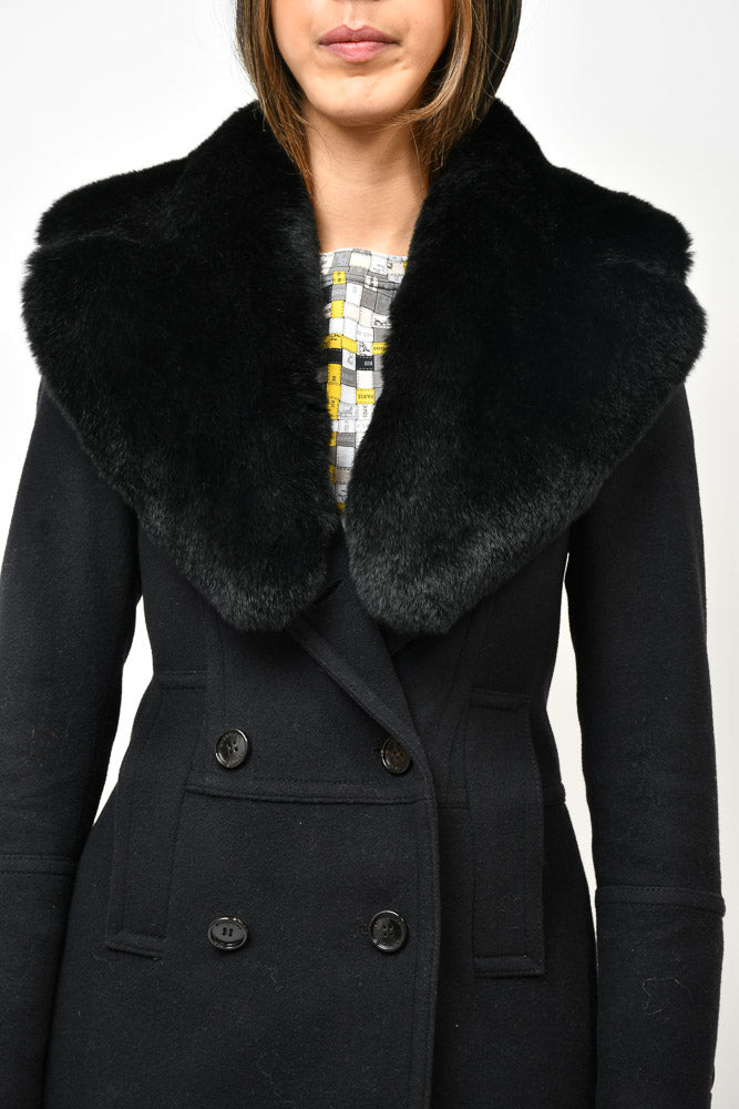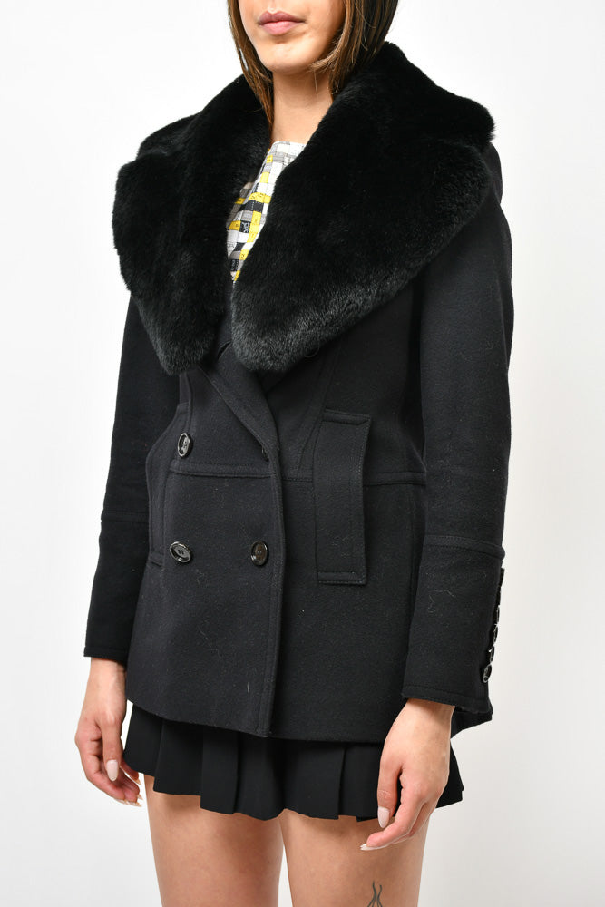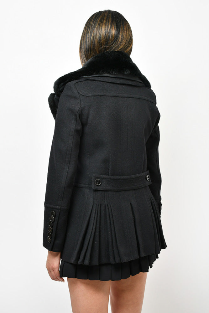Refresh availabilityBurberry Prorsum Black Wool/Cashmere Jacket with Detachable Fur Collar. Front button closure. Pointed collar. Button closure on cuffs. Back belt and pleat detail. 2 exterior slip pockets. Single interior slip pocket. Black interior lining. Tonal stitching.