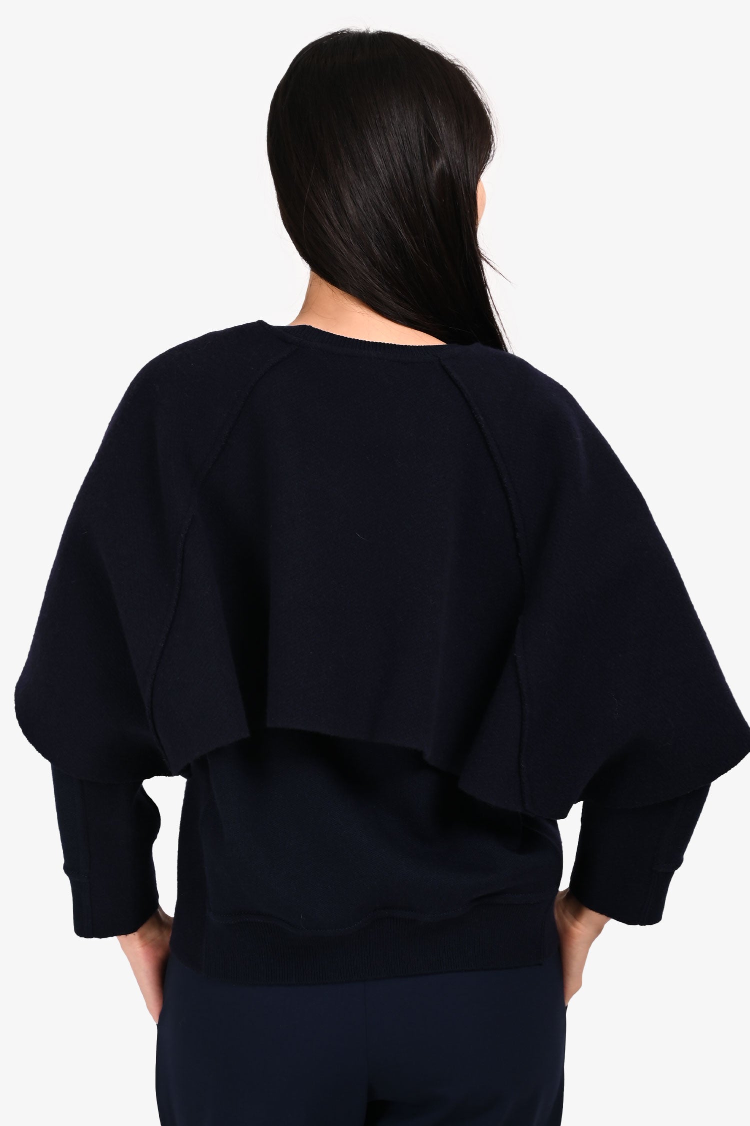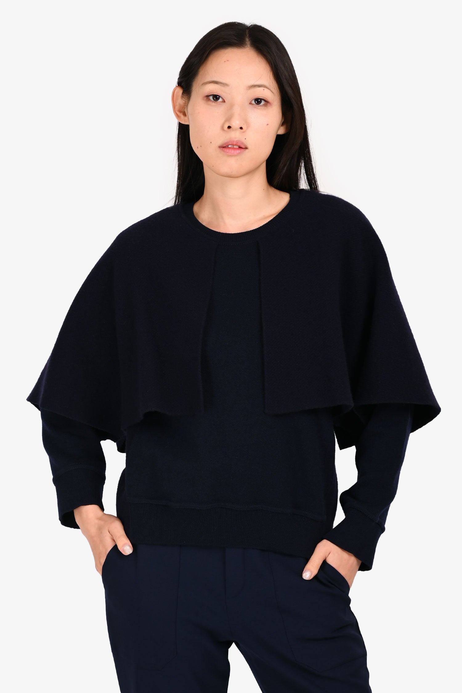 Refresh availabilityBurberry Prorsum Navy Cape Style Sweater. Pull-on. Round neck. Ribbed neck, cuffs and hem. Tonal stitching.