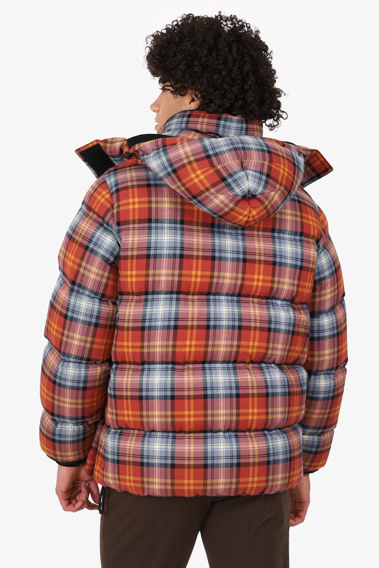 Burberry Red Quilted Checked Cotton-Twill Down Hooded Jacket Size S Mens