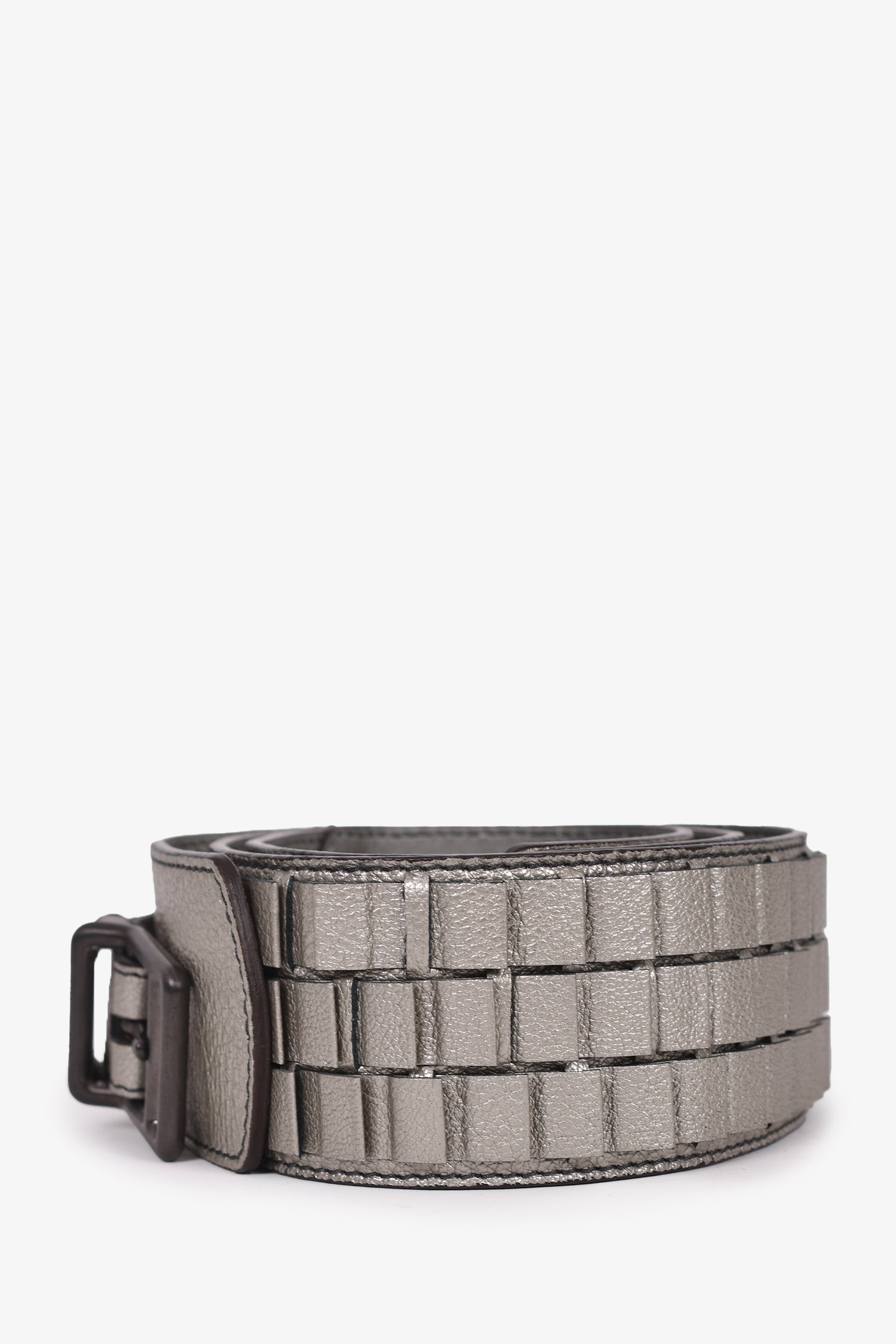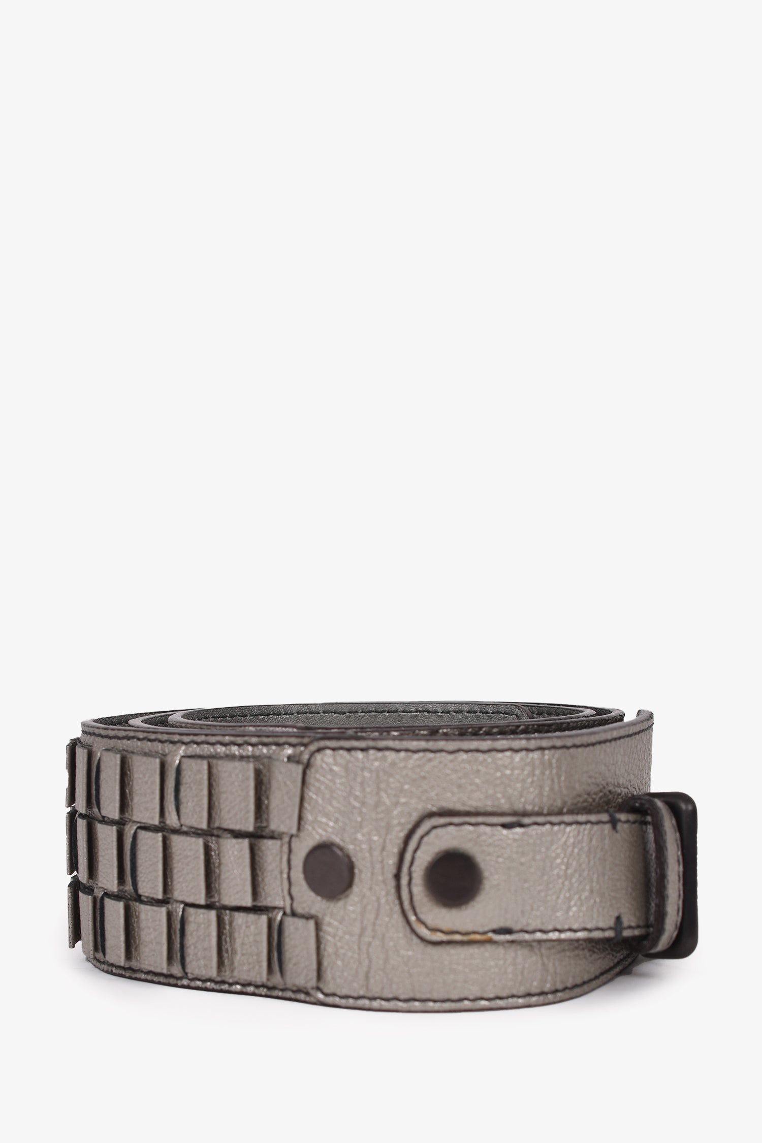Refresh availabilityBurberry Silver Leather Belt. Buckle closure. Grey-tone hardware. Tonal stitching.