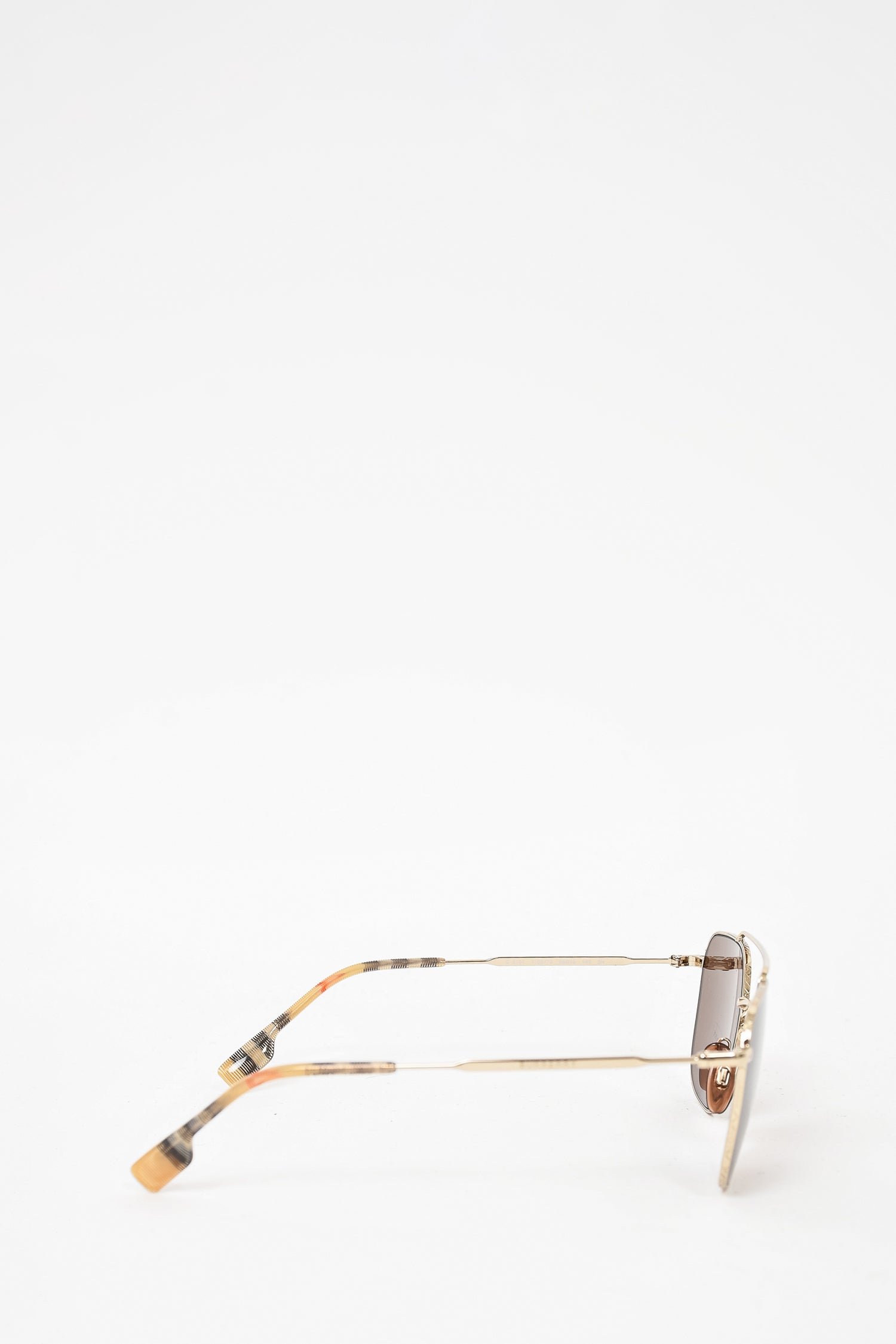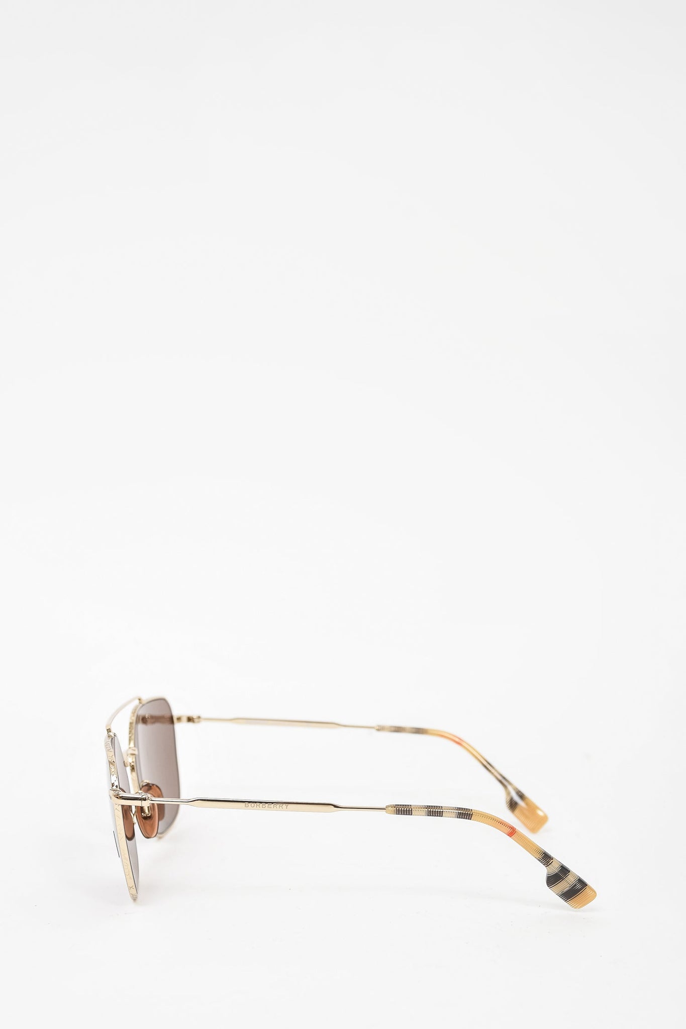 Burberry Silver Metal Frame Sunglasses with Check Ends