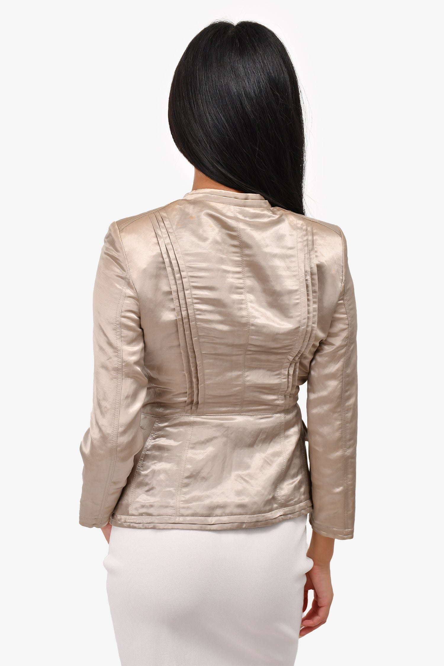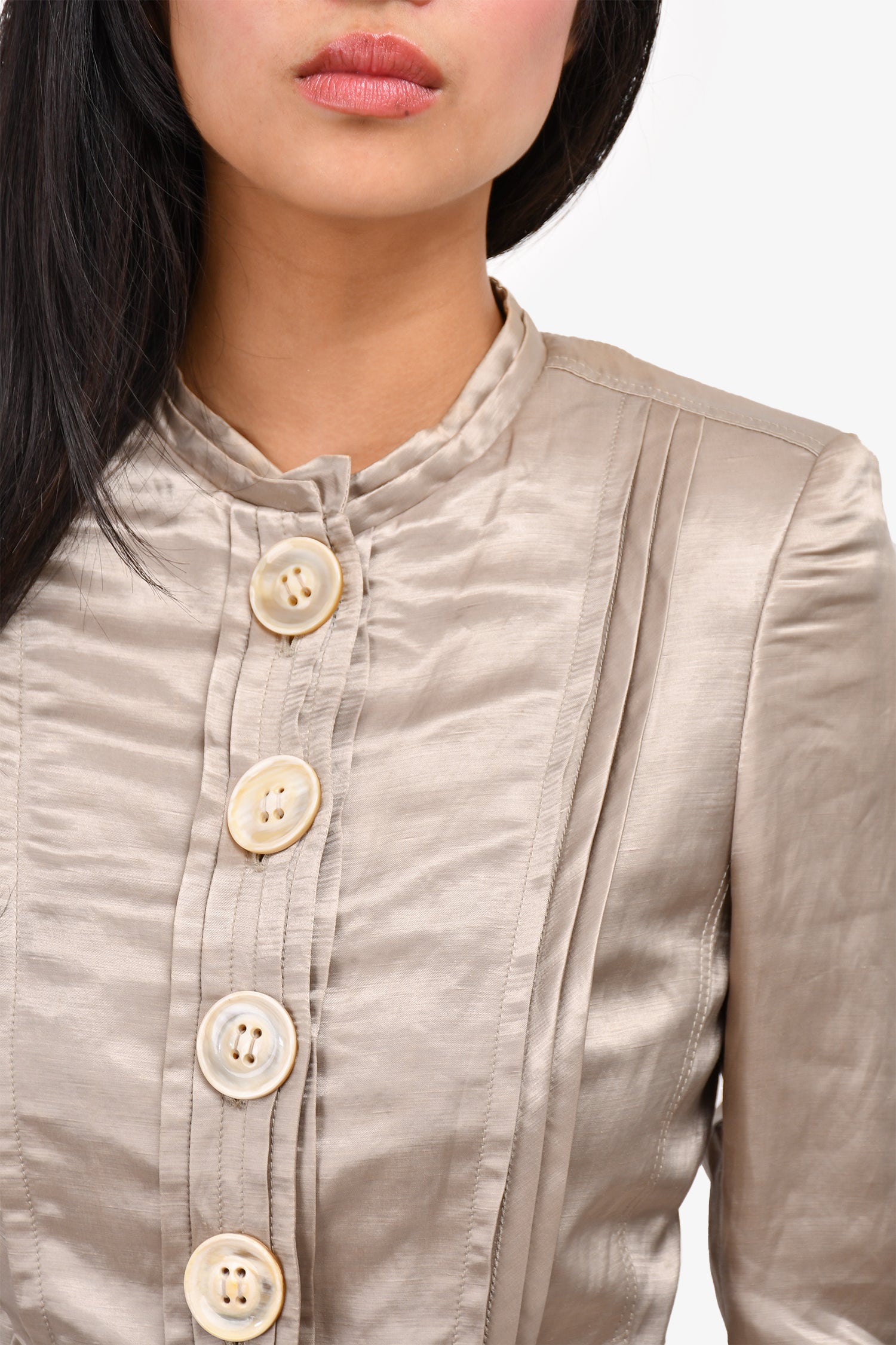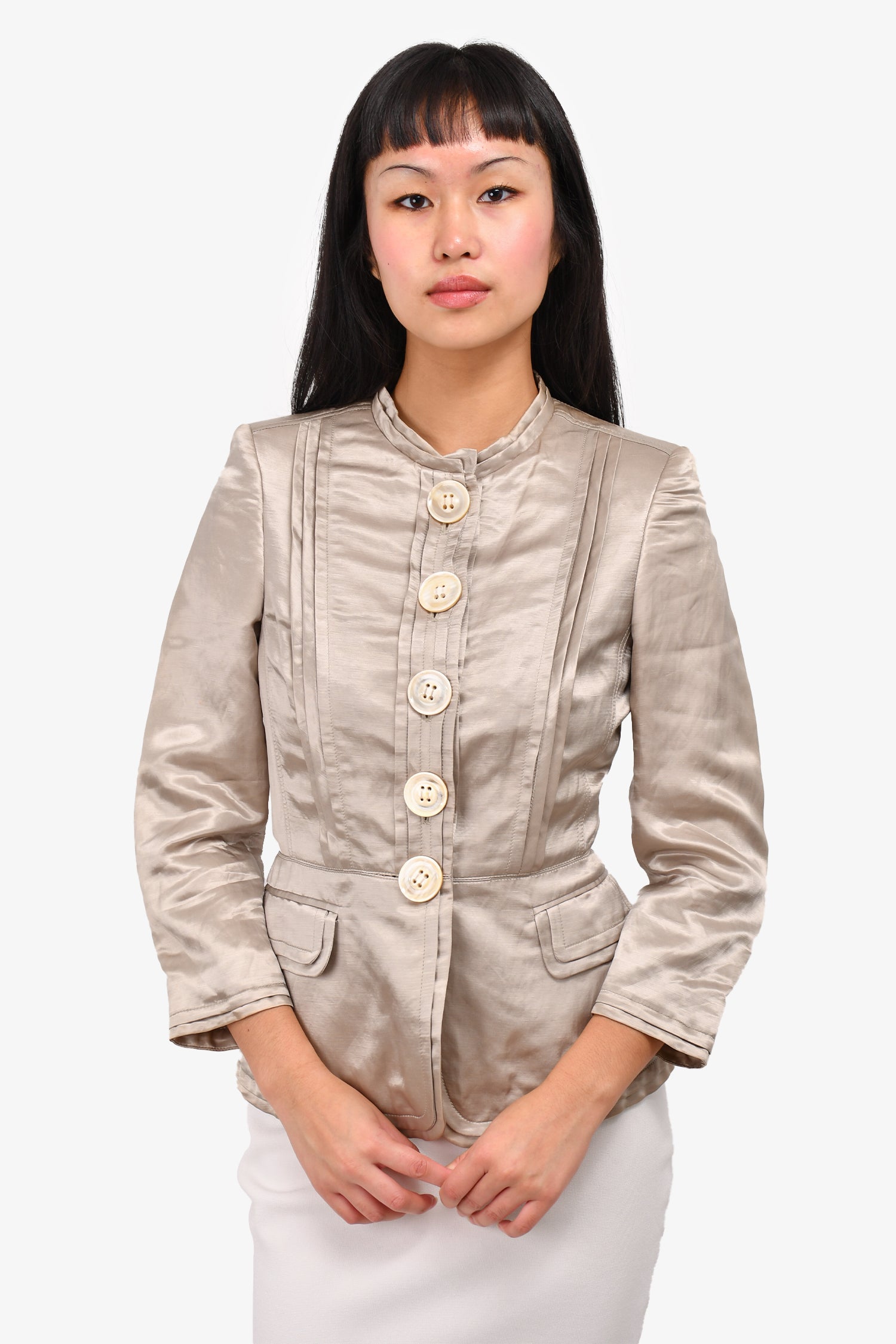 Refresh availabilityBurberry Vintage Grey Satin Evening Jacket. Front button-up closure. Front pockets. Padded shoulders.