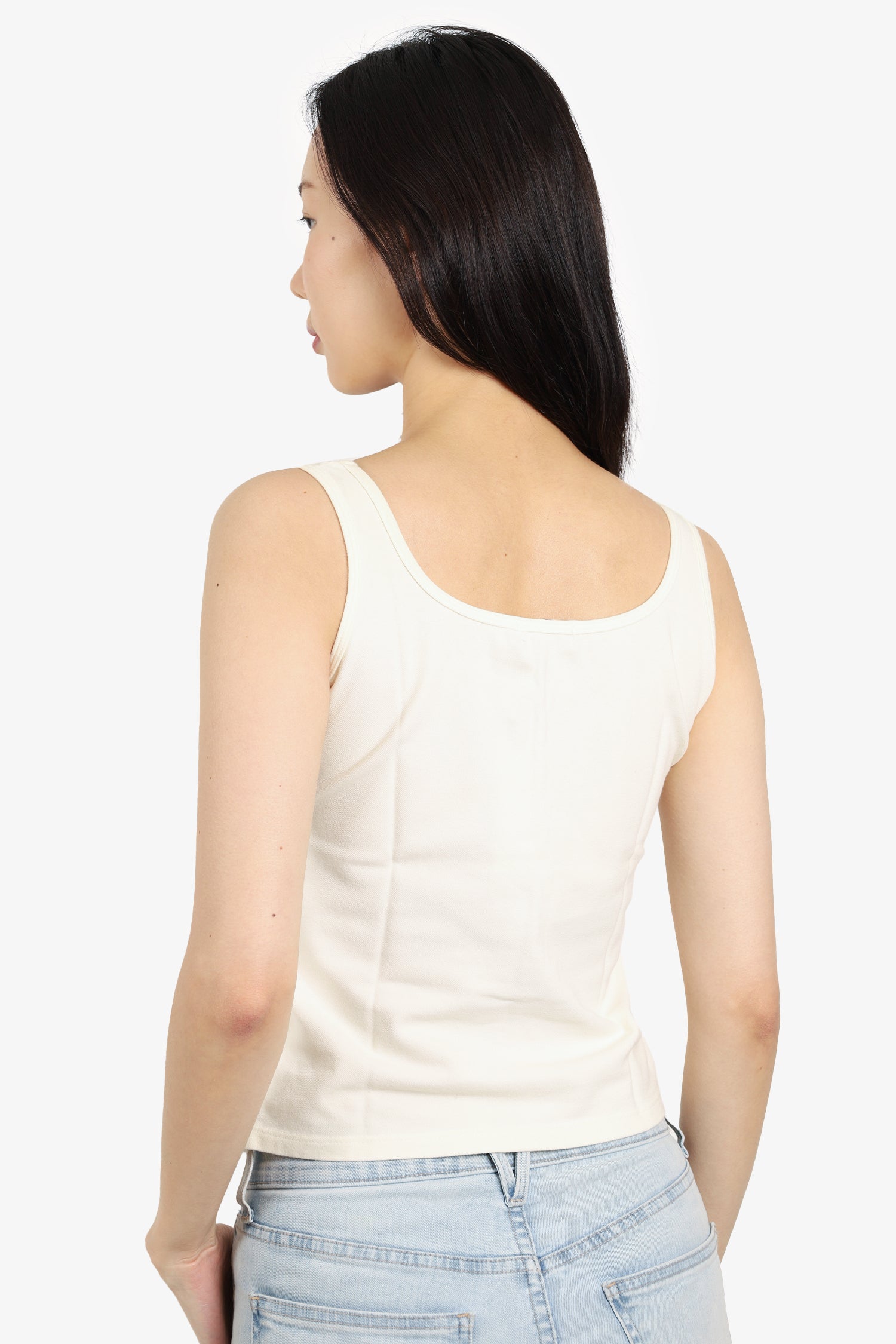 Burberry White Logo Embroidery Cropped Tank Top Size Small