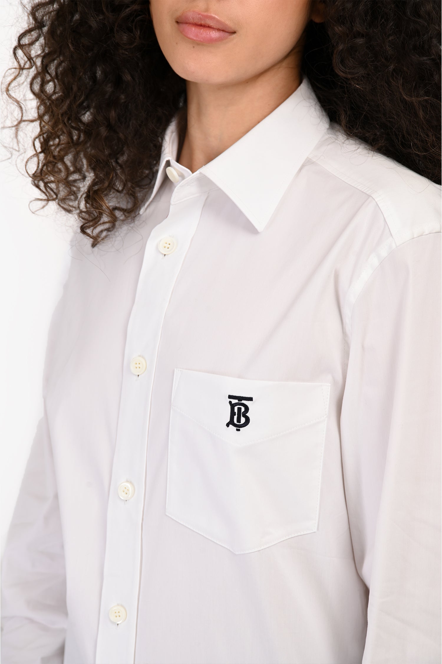 Refresh availabilityBurberry White/Multicolour Cotton Button Up Long Sleeve Shirt. Slip-on. Front button-up closure. Pointed collar. Cuffs with button-up closures. 1 exterior chest pocket. Tonal stitching.