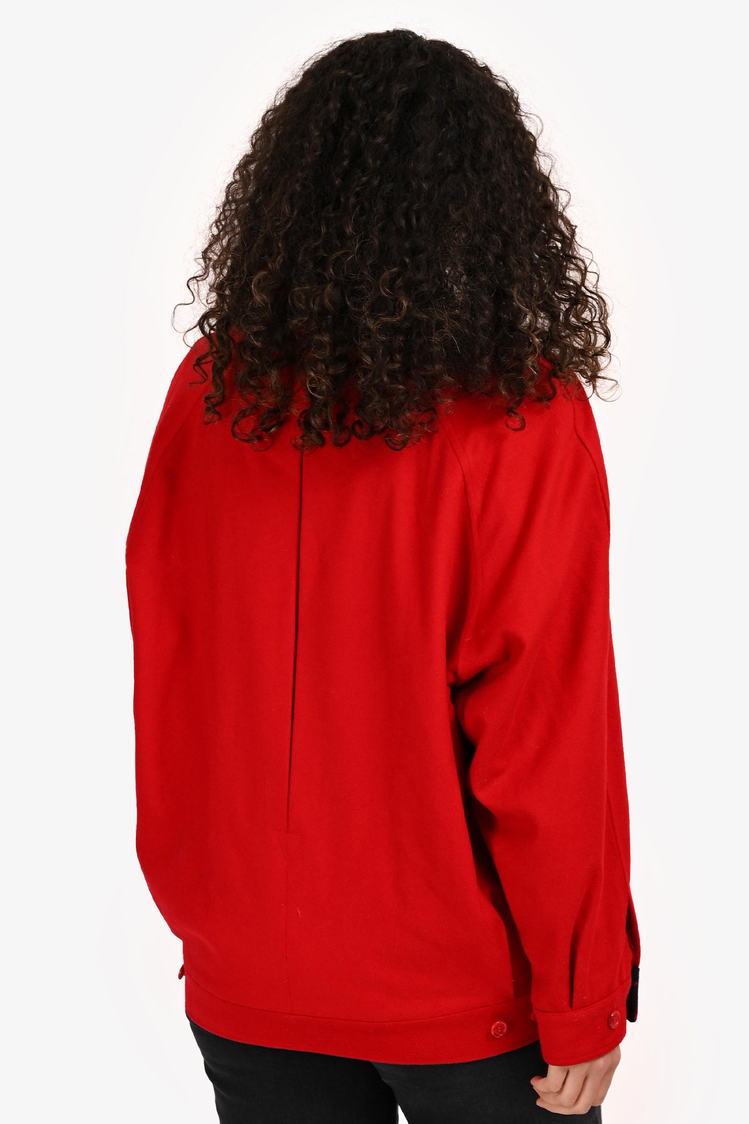 Burberrys Red Wool Collared Zippered Jacket Size 10