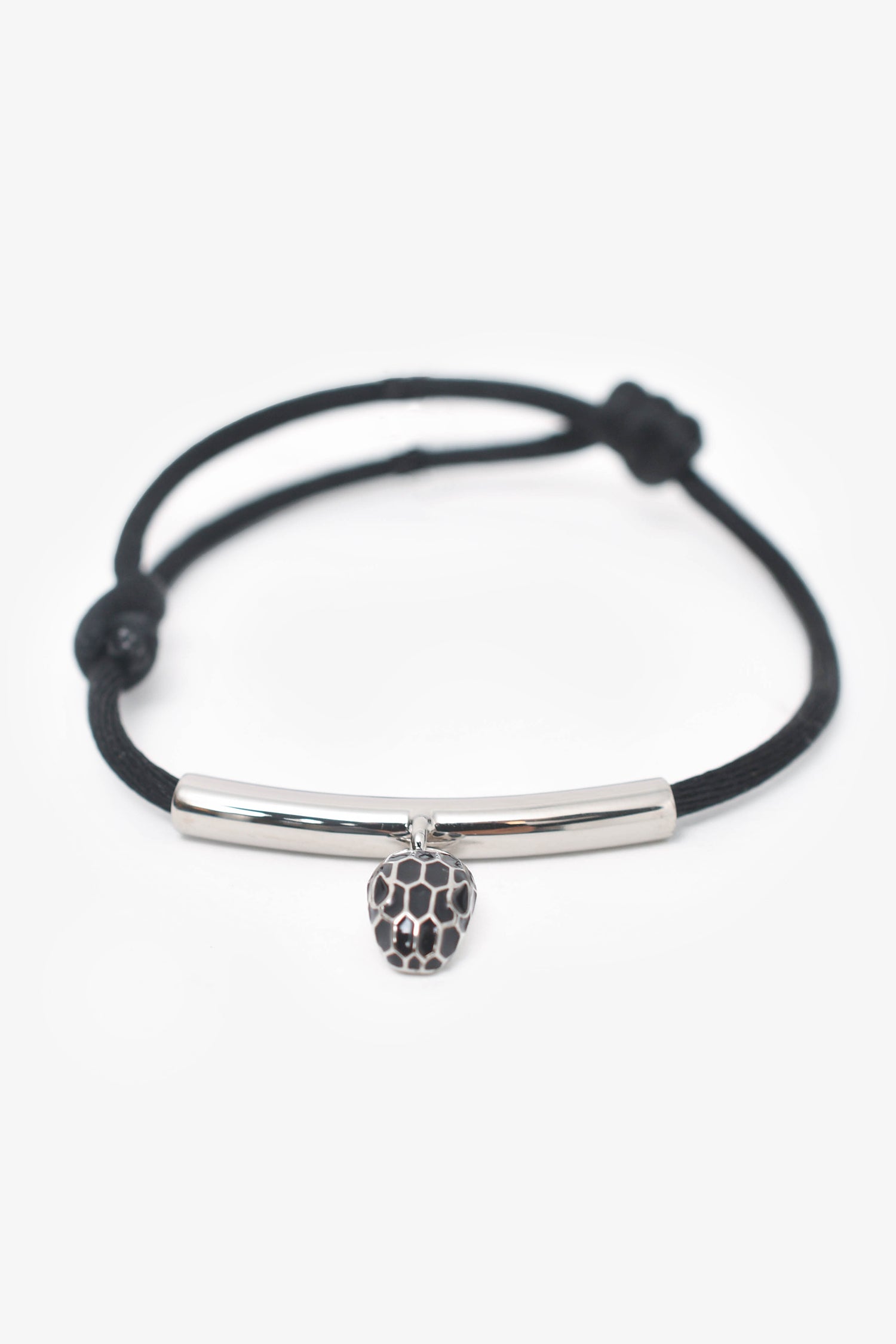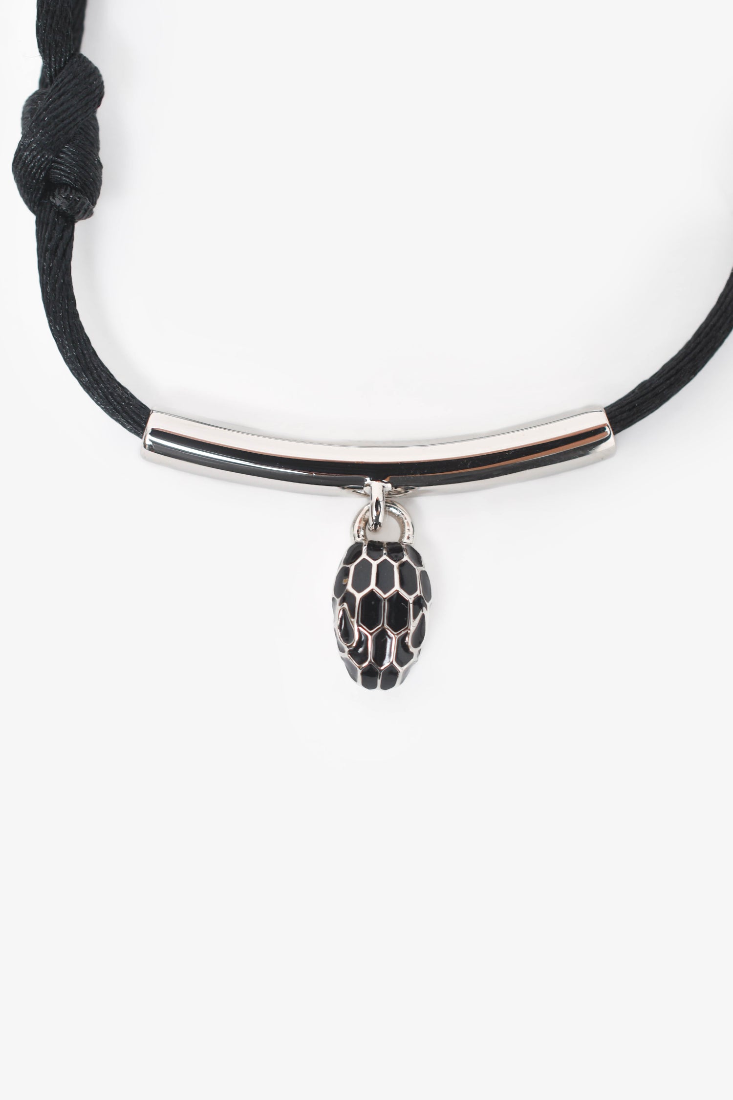 Refresh availabilityBvlgari Black Mini Serpendi Forever String Bracelet. Adjustble knots. Silver-tone hardware. Tonal stitching.