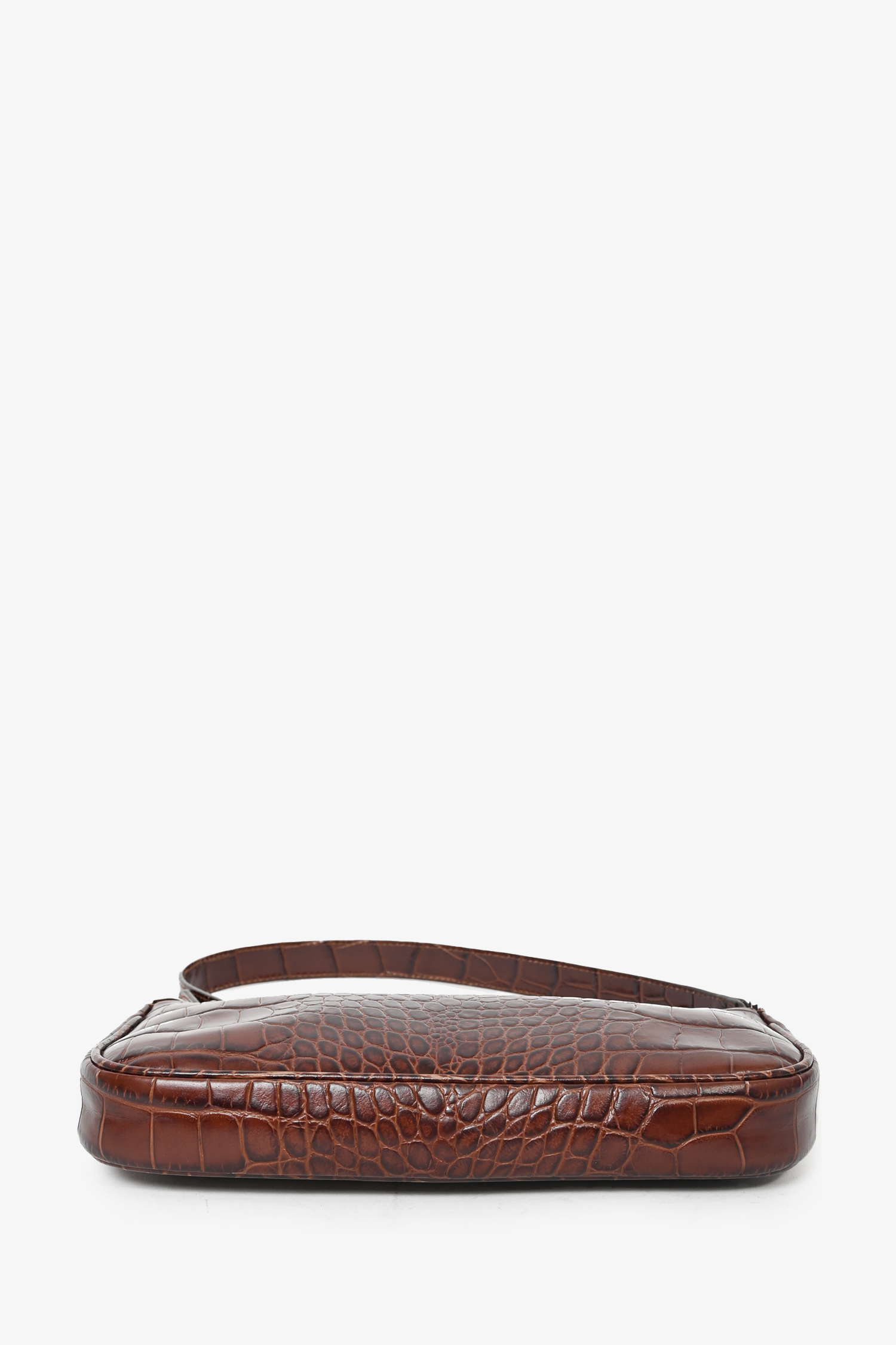 By Far Brown Leather Croc Embossed Shoulder Bag