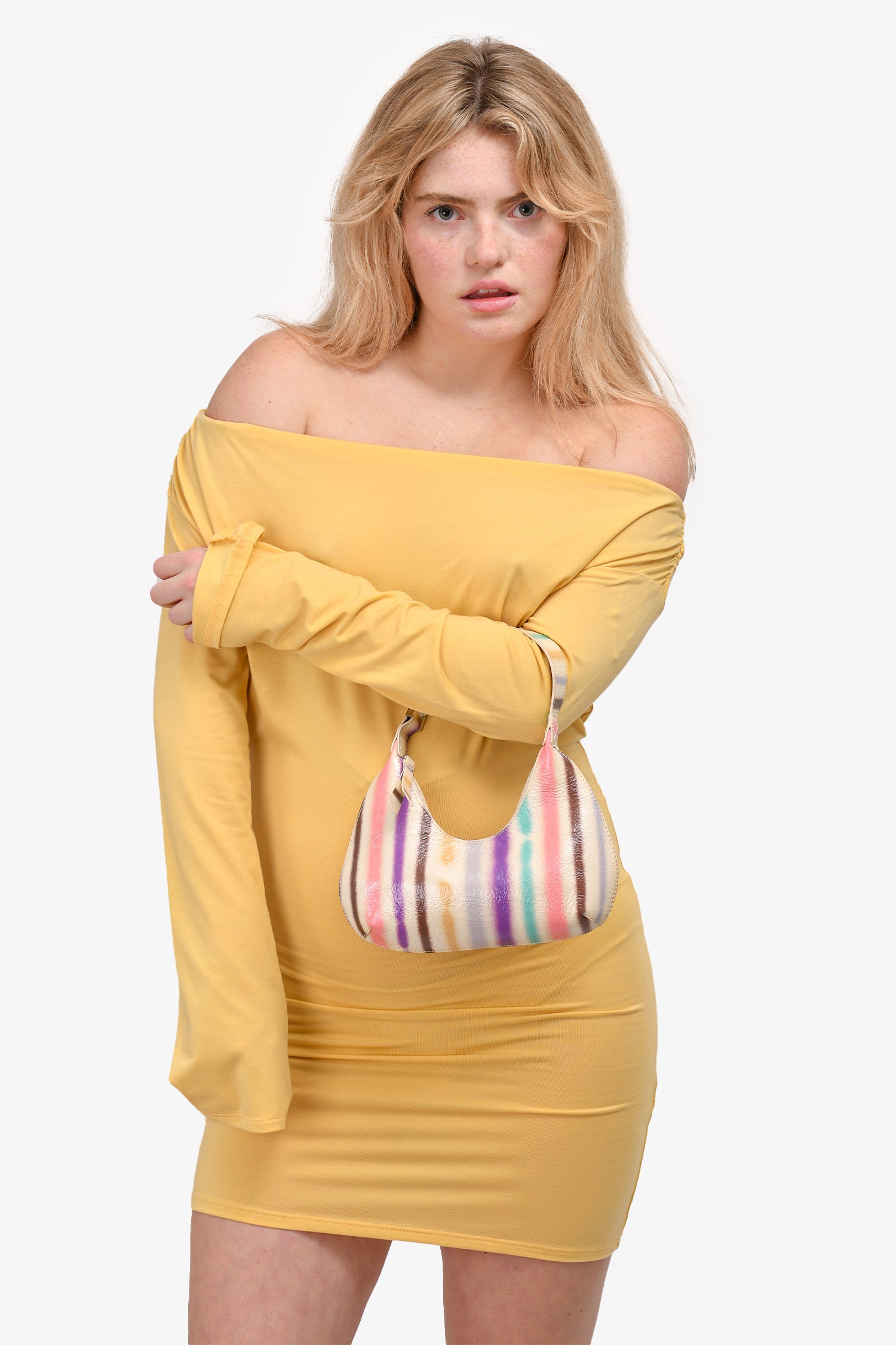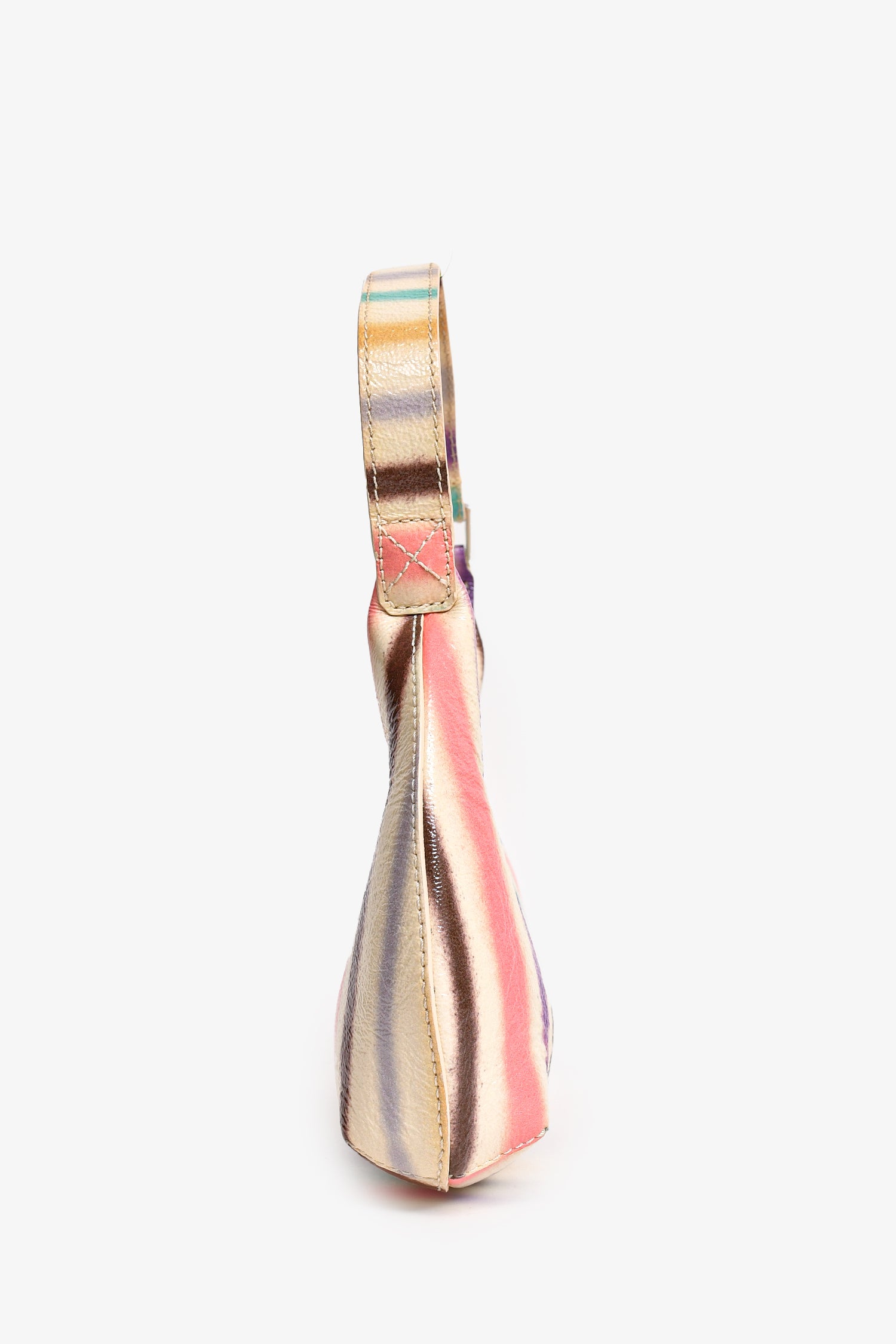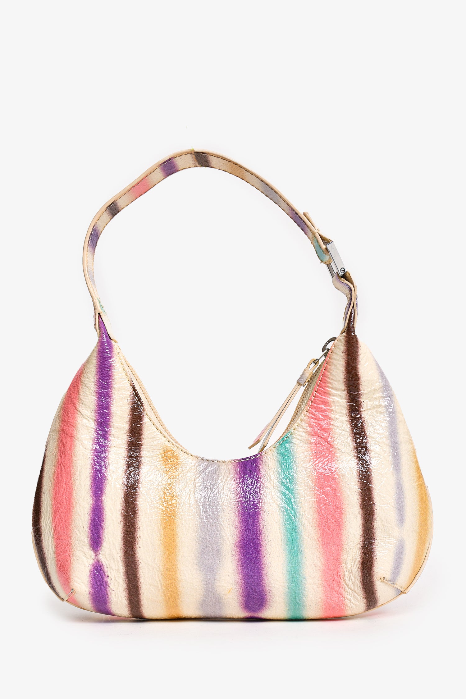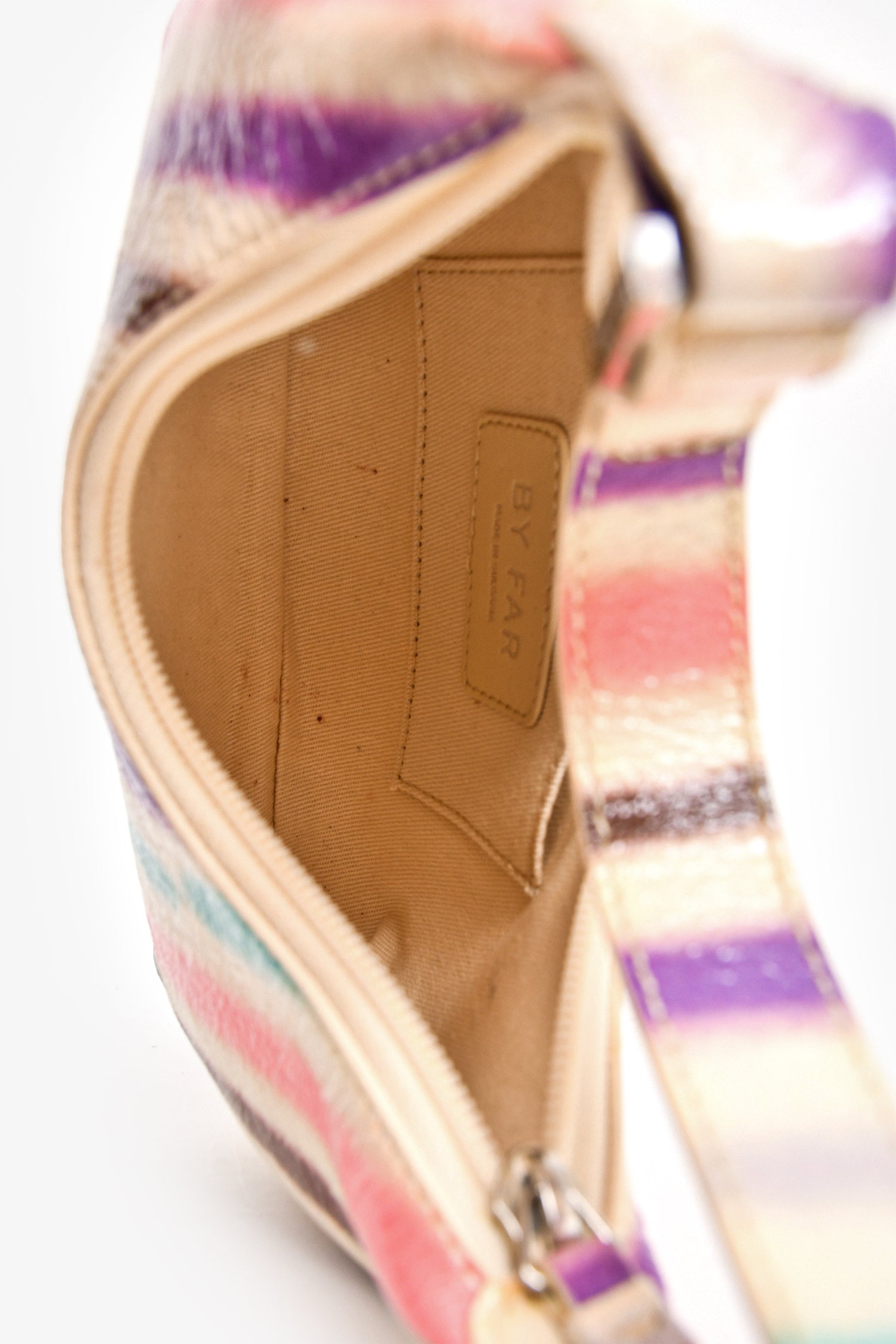 Refresh availabilityBy Far Multicolour Striped Mini Amber Bag. Tonal stitching. Single flat handle. Silver-tone hardware. Canvas lined interior with a slip pocket. Zipped top. Multicoloured stripes throughout.