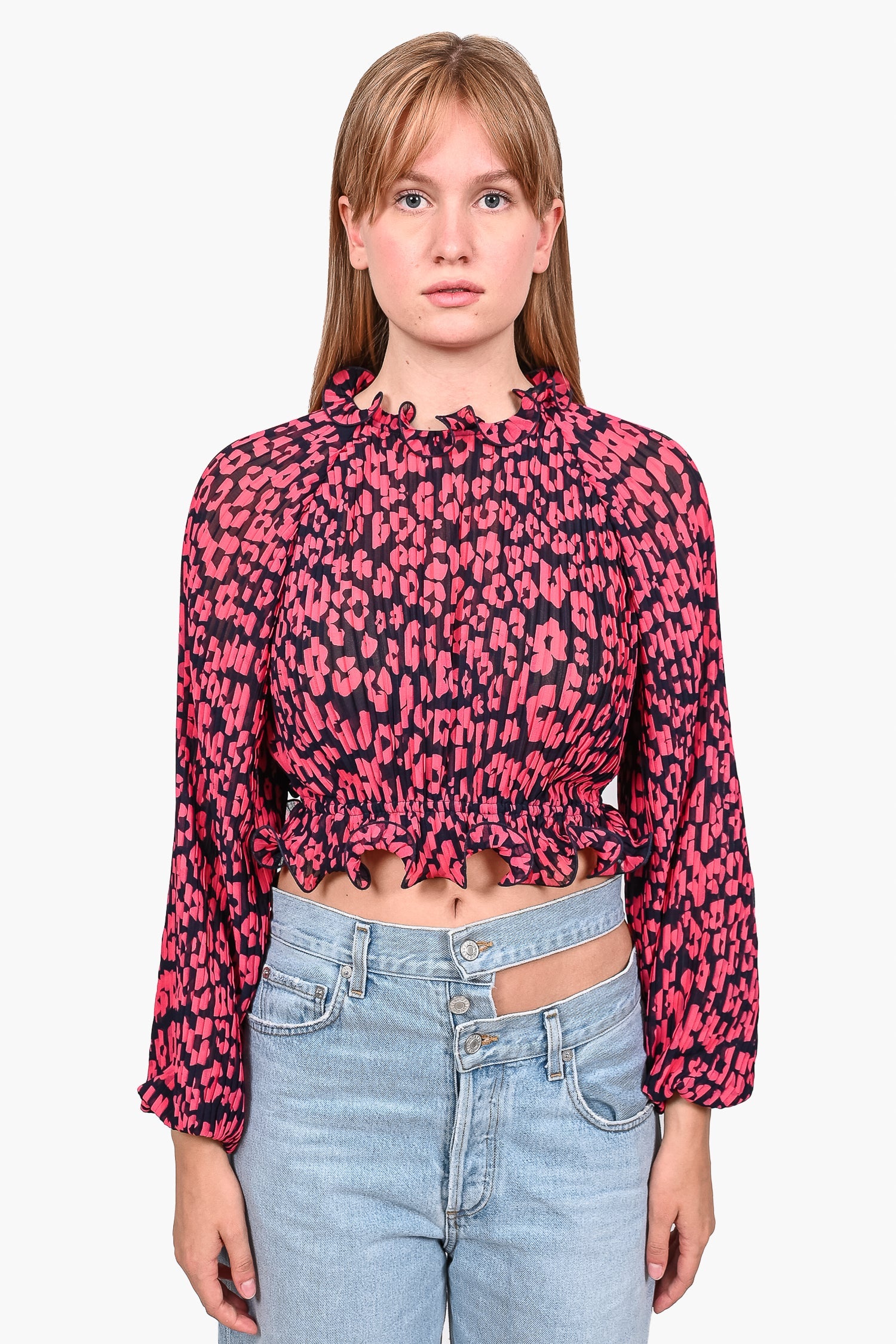 C/Meo Collective Pink/Navy Printed Pleated Blouse Size XS