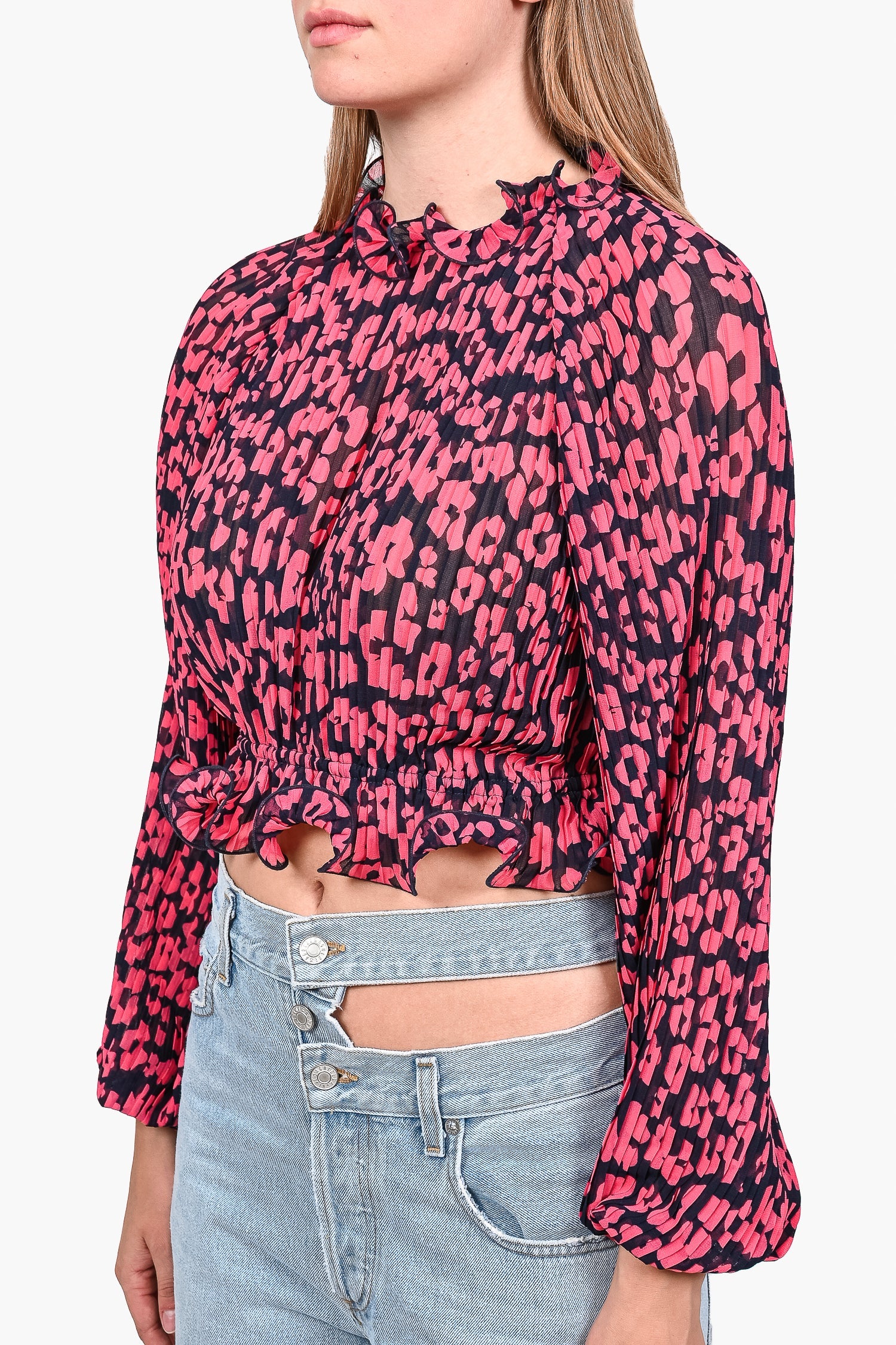 Refresh availabilityC/Meo Collective Pink/Navy Printed Pleated Blouse. Rear button closure. Elasticized cuffs. Tonal stitching.