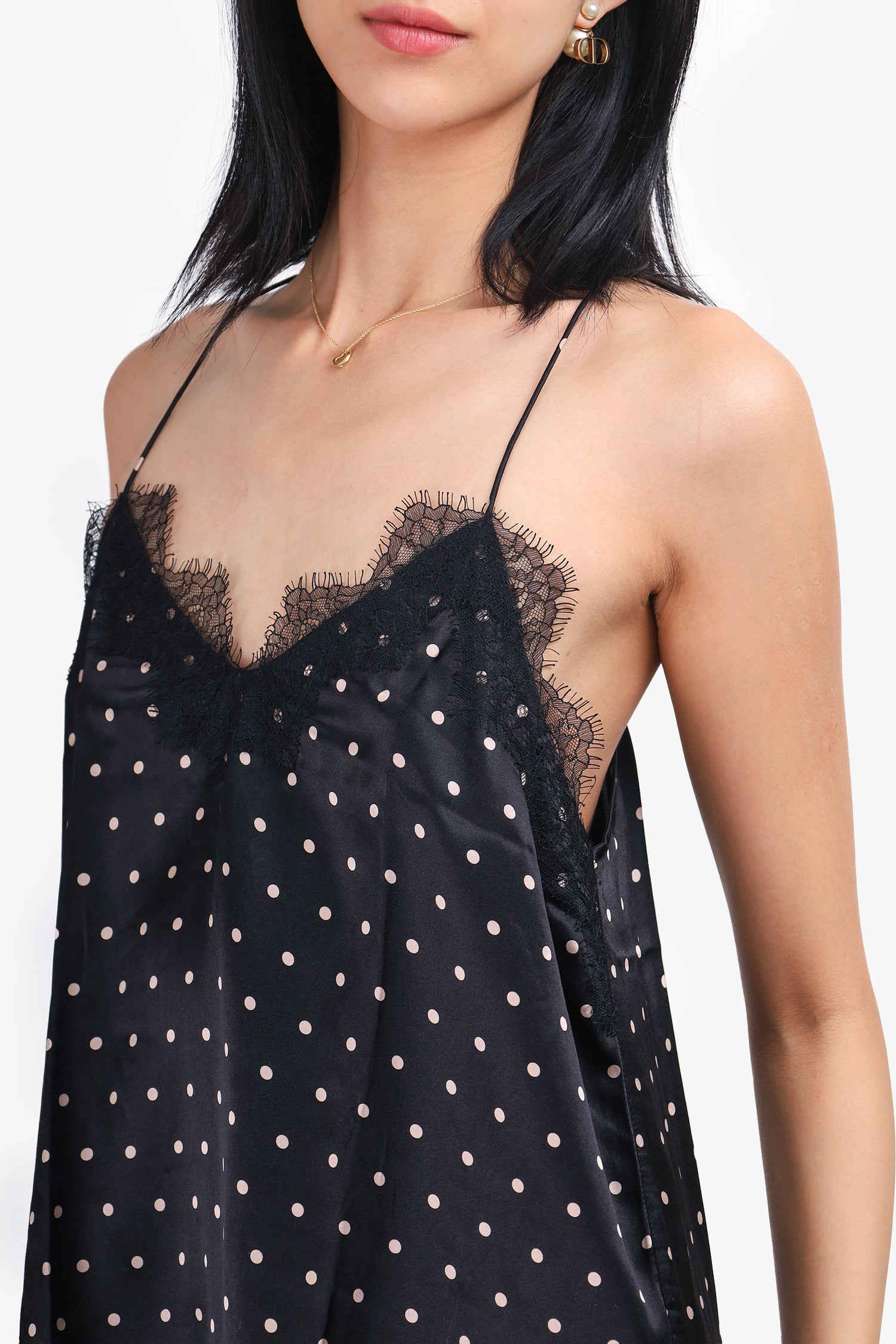 Refresh availabilityCami NYC Black Polka-Dot Tank. Pull-on. Sleeve-less. Lace neckline detail. Tonal stitching.