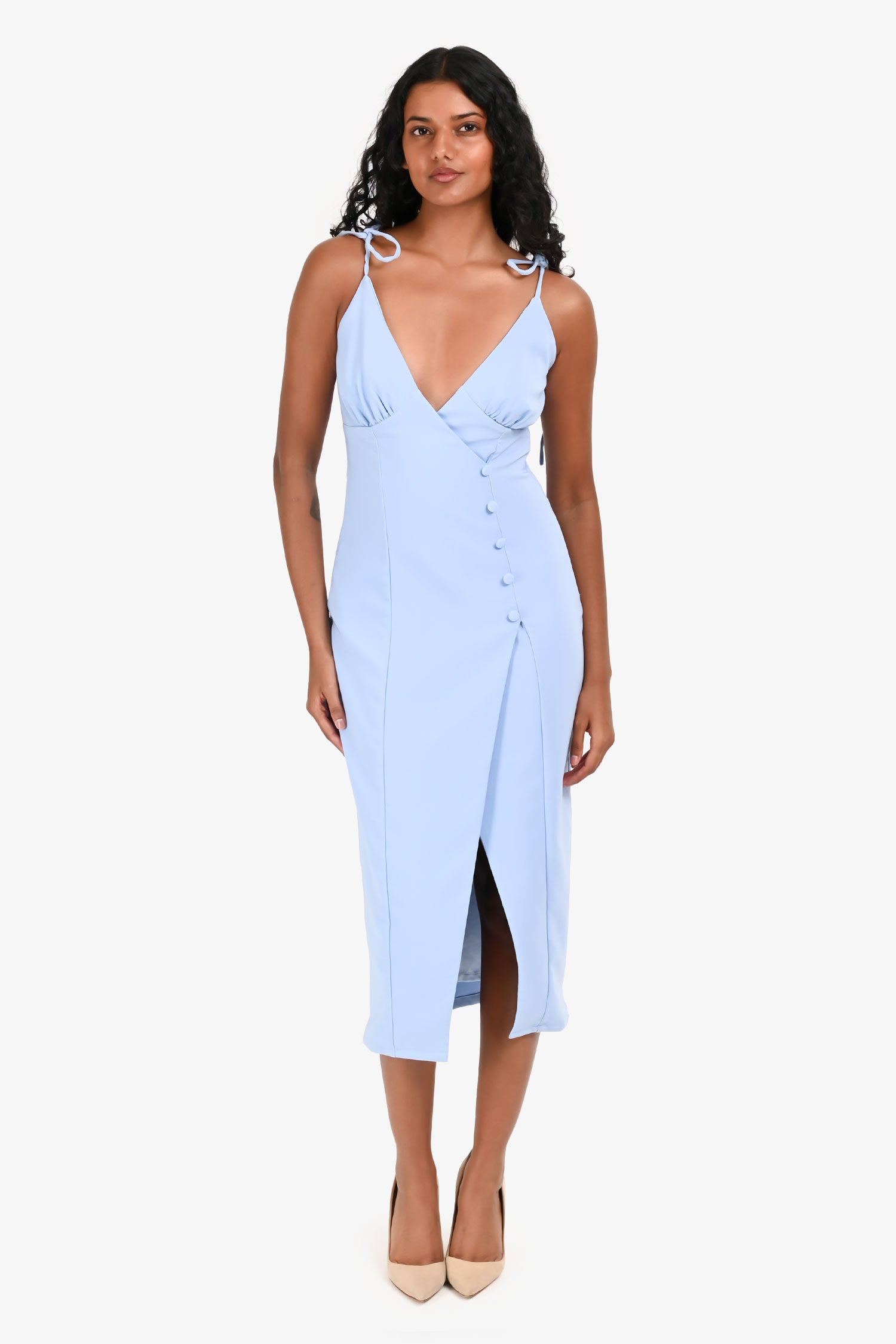 Camila Coelho Blue Satin 'Aaliyah' Midi Dress Size XS