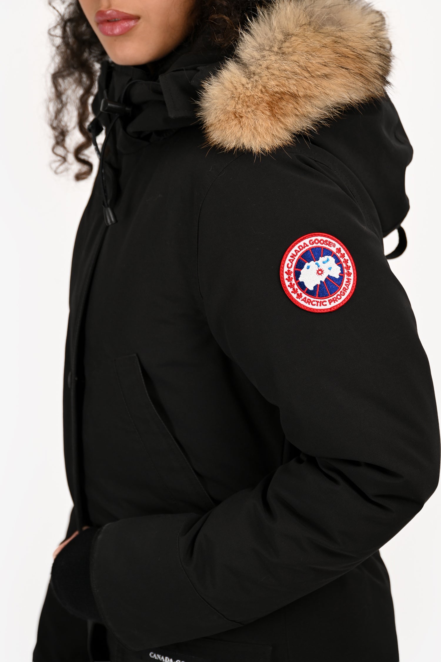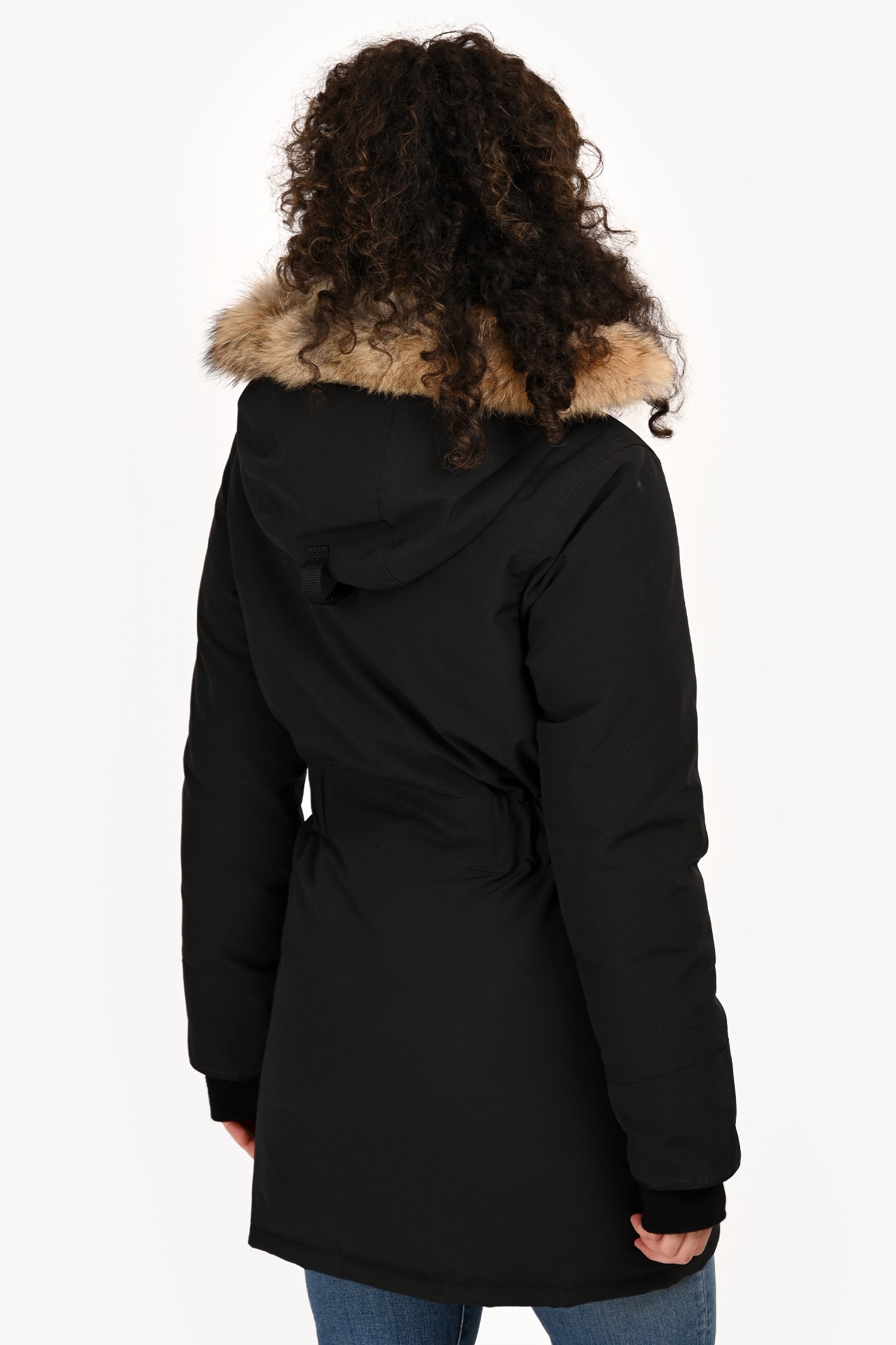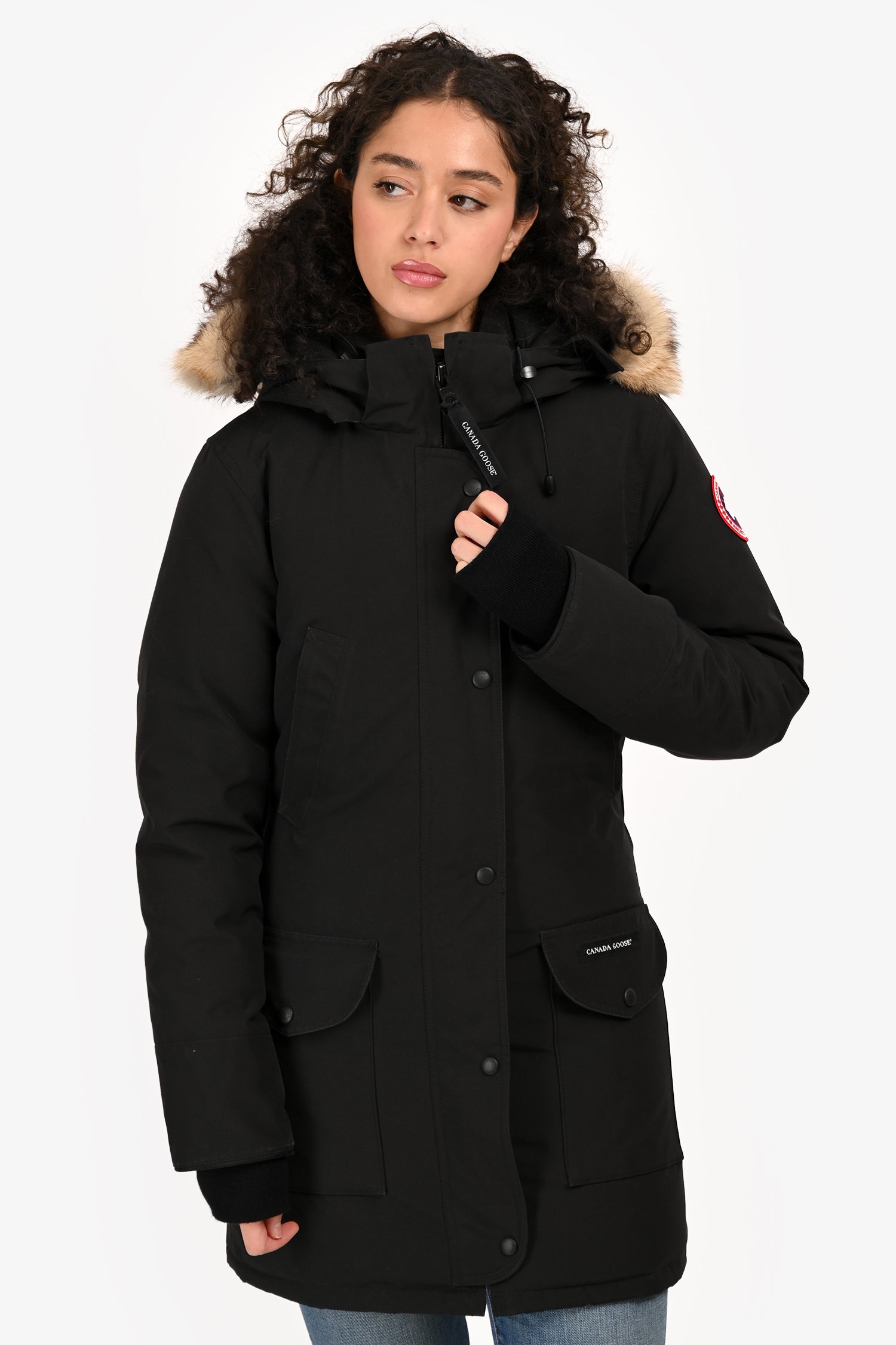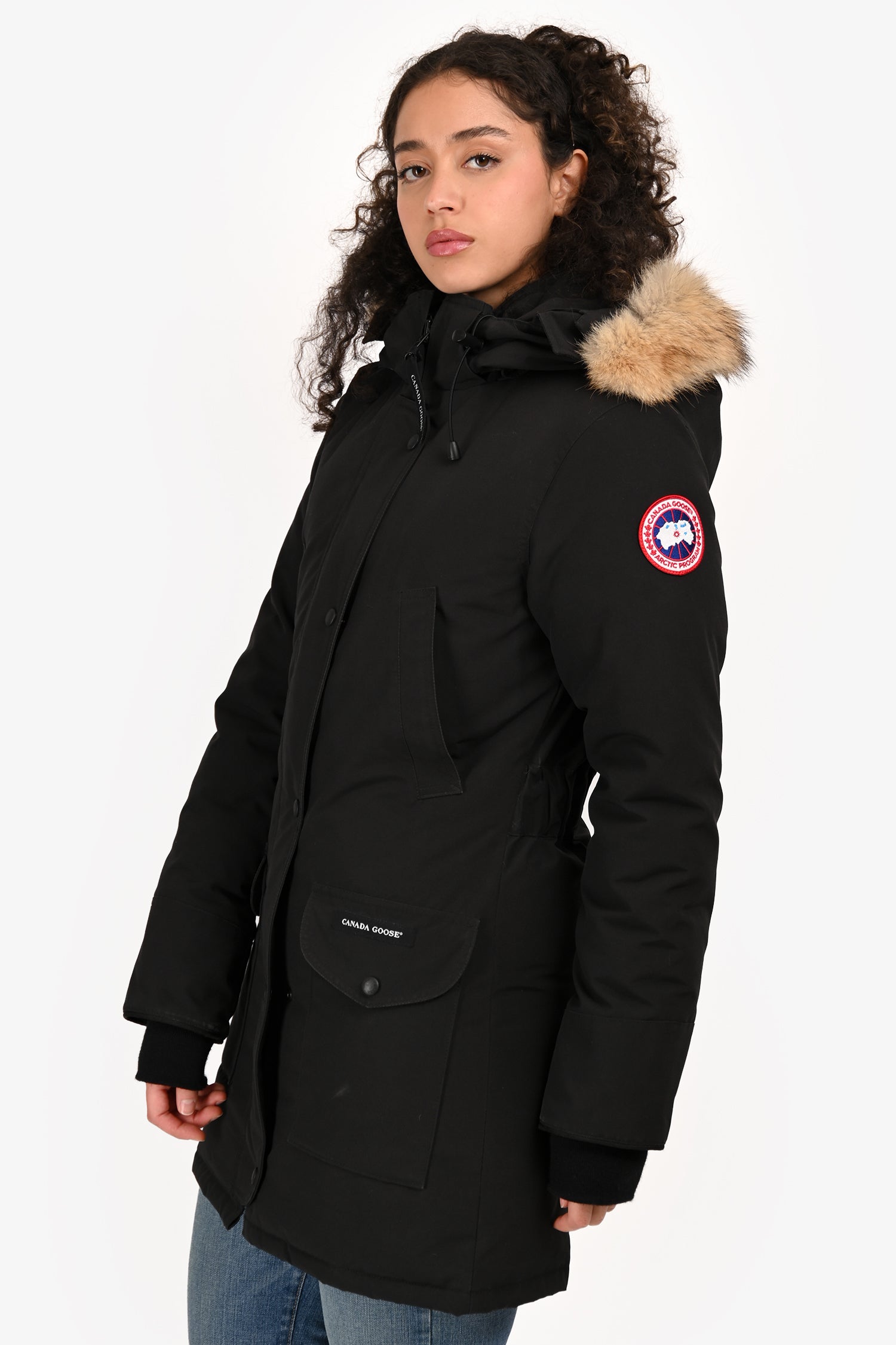 Refresh availabilityCanada Goose Black Down Trillium Fur Hood Parka. Front two-way and snap-button zip closures. Front pockets with snap-button closure. Brand logo patch on the left sleeve. Removable fur trim with zip closure. Tonal stitching.