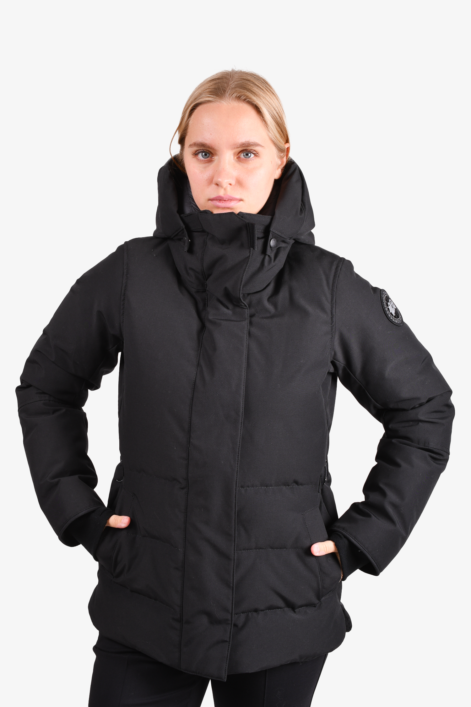 Refresh availabilityCanada Goose Black Lynwood Parka. Front two-way zip and snap button-up closure. Front pockets. Brand logo patch on the left sleeve. Removable hood. Tonal stitching.