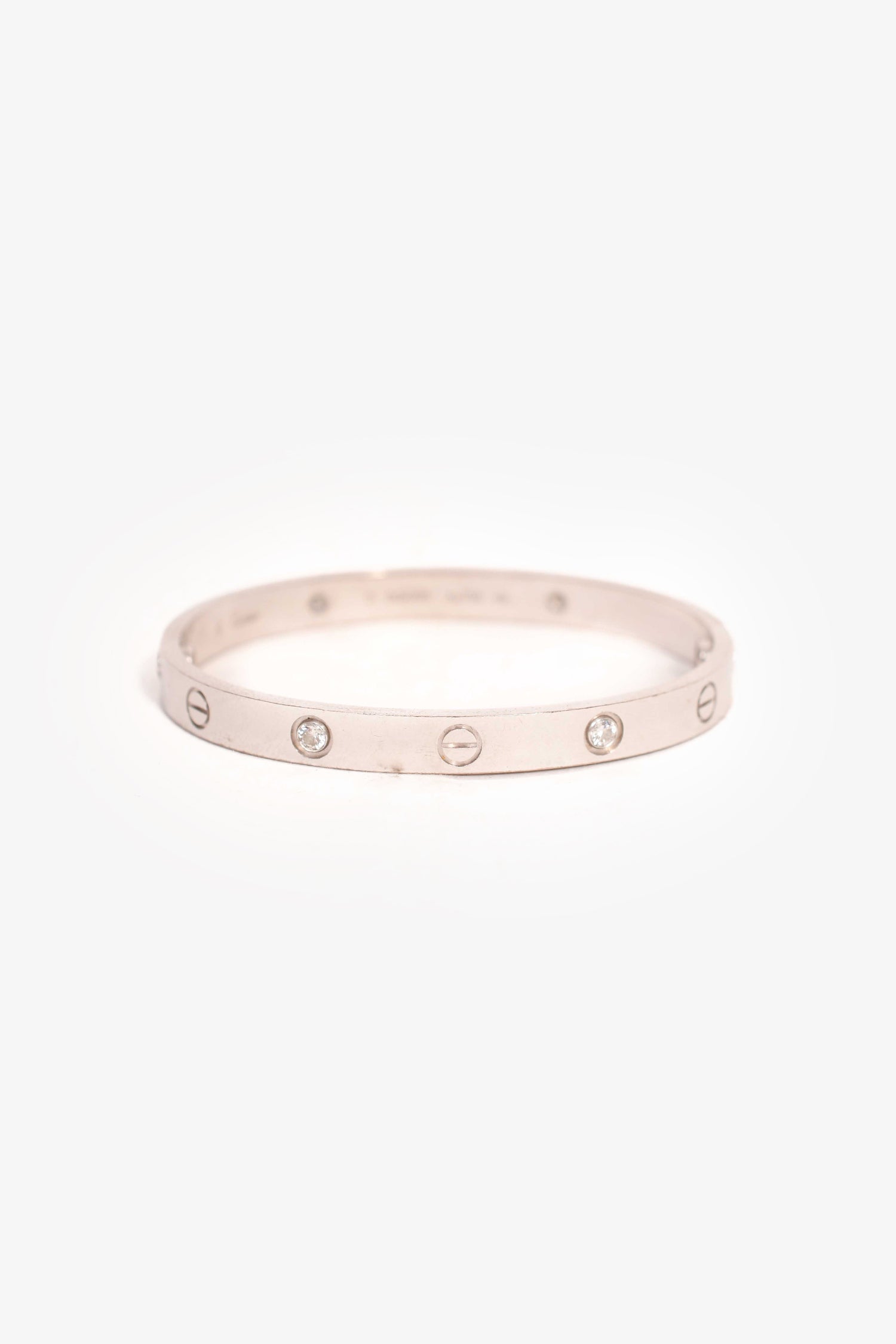 Refresh availabilityCartier 18K White Gold 4-Diamond Love Bracelet Medium Model. Screw closure. Includes screwdriver.
