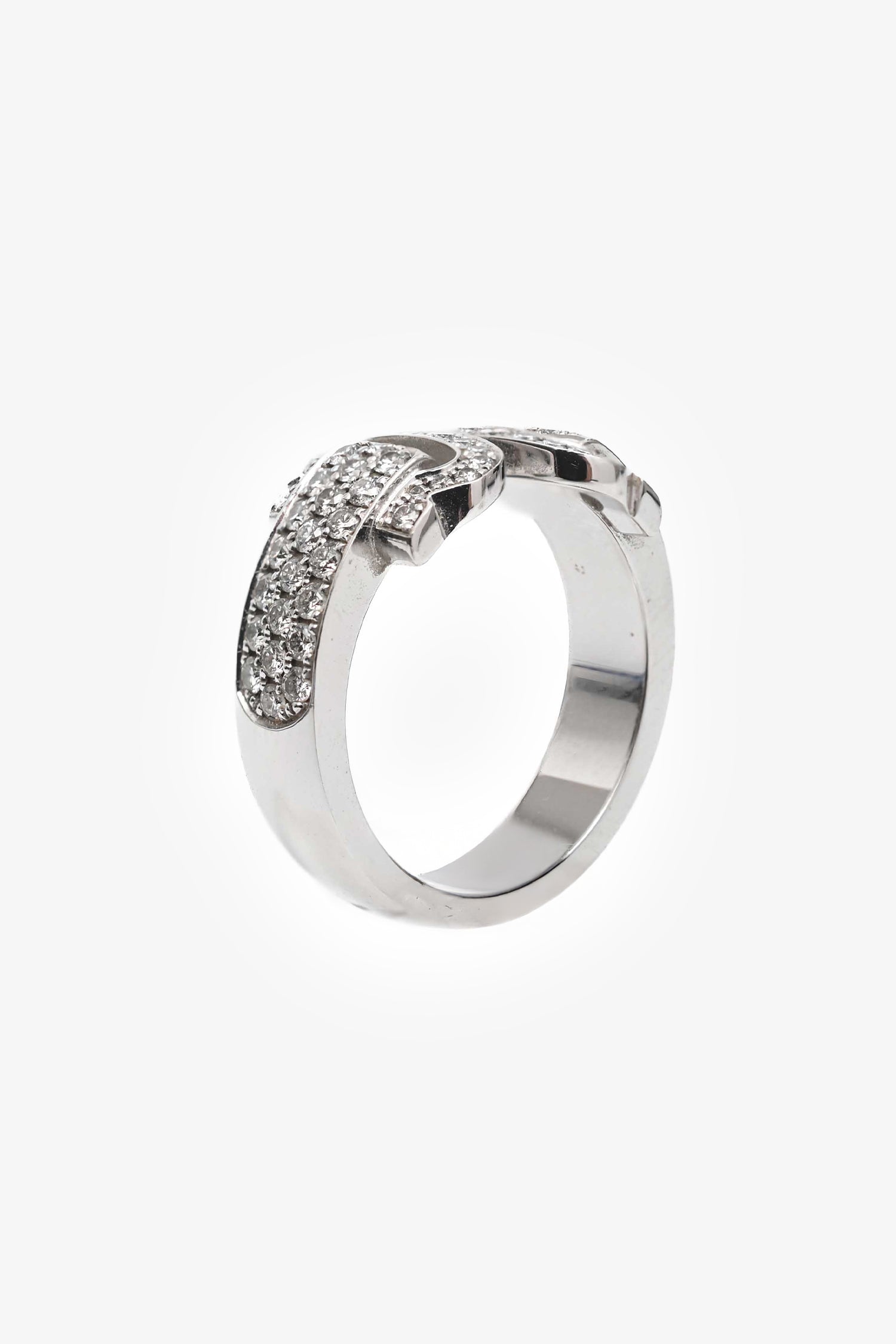 Cartier 18K White Gold Diamond Set C De Cartier Ring Size 53