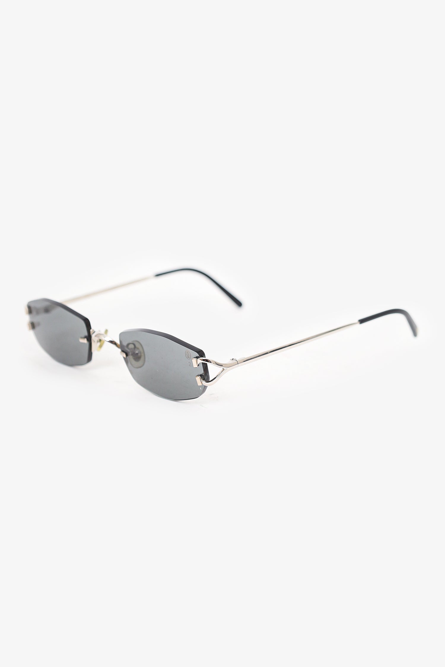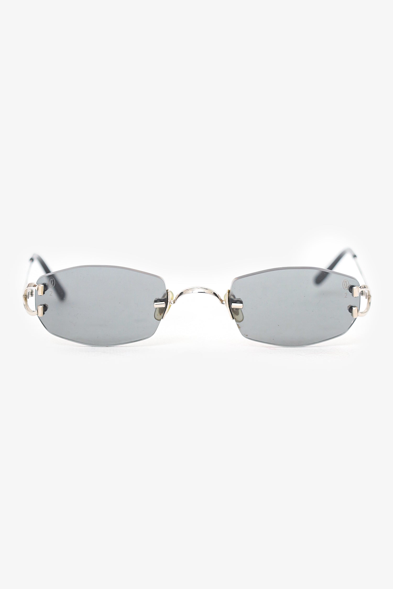 Refresh availabilityCartier Black Rimless Sunglasses. Adjustable nose pads. Silver-tone hardware.