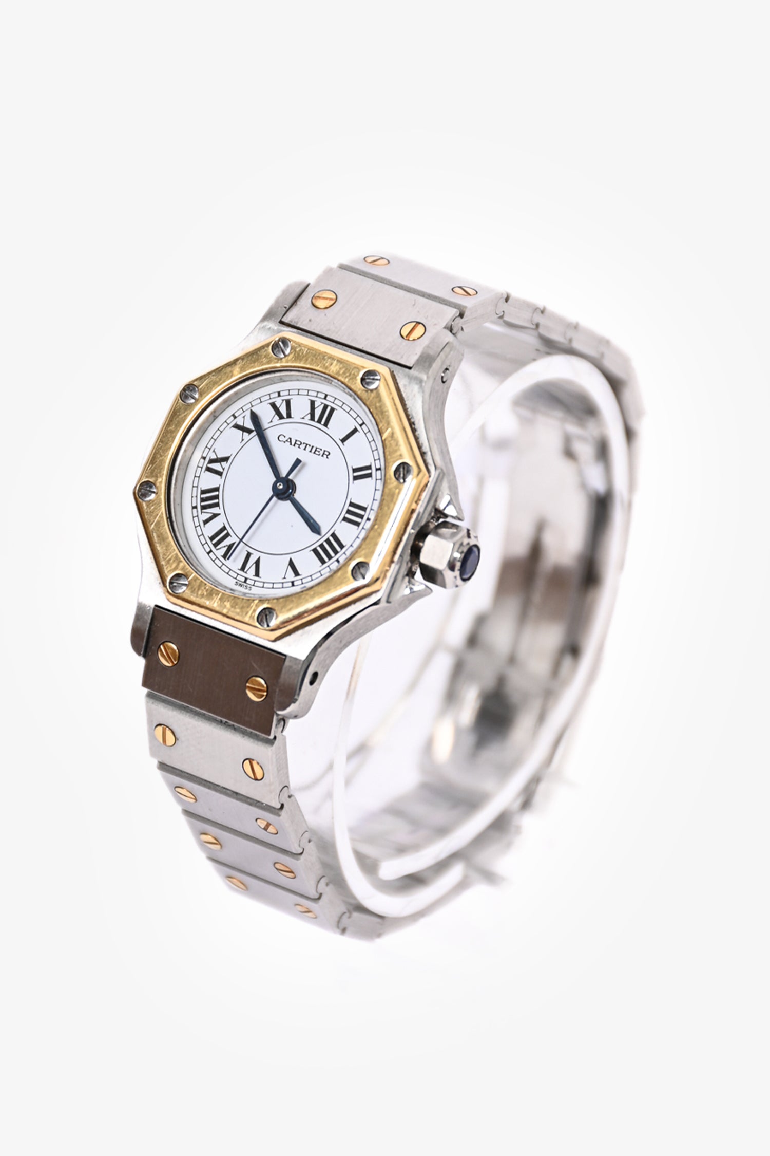 Refresh availabilityCartier Stainless Steel/18K Yellow Gold Santos Octagon Automatic 25mm Watch. White dial.