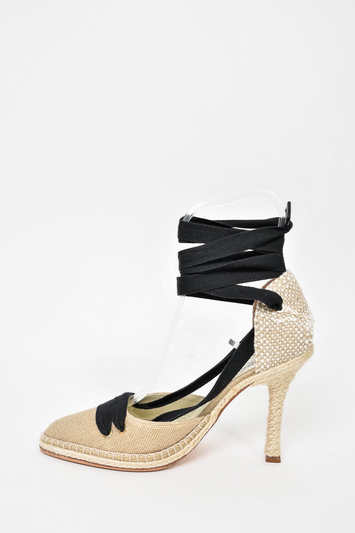Castaner X Manolo Blahnik Tan Canvas Lace Up Heels sz 37
