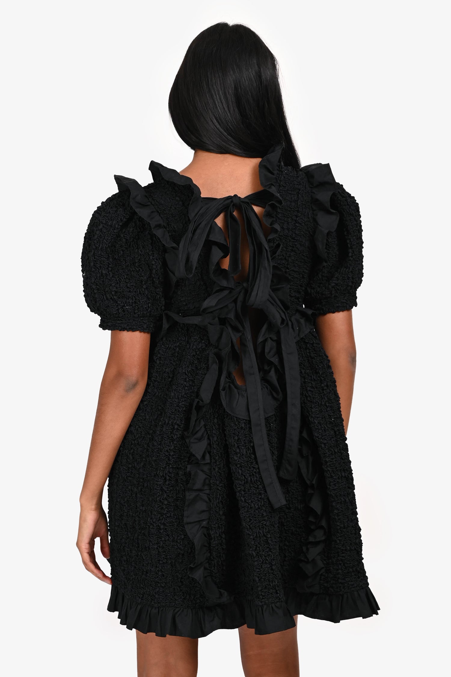 Refresh availabilityCecilie Bahnsen Black Textured Ruffle Mini Dress. Pull-on. Round neckline. Rear tie-up closures. Tonal stitching.
