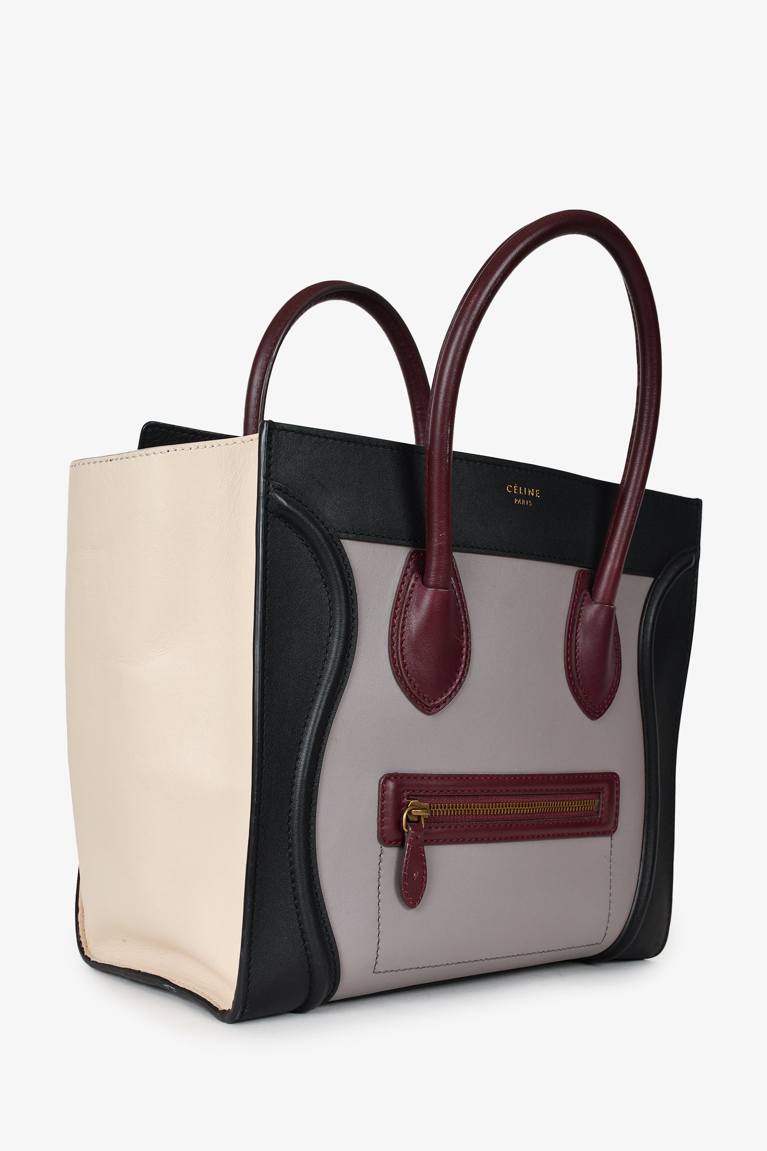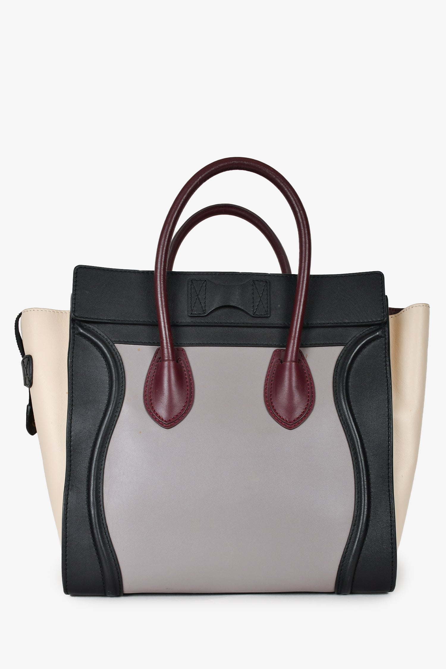 Celine 2011 Black/Burgundy/Grey Leather Medium Luggage Tote