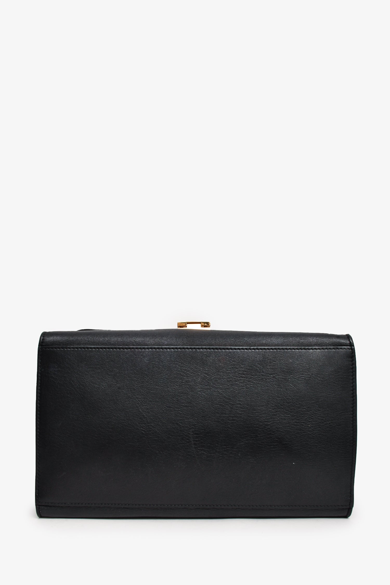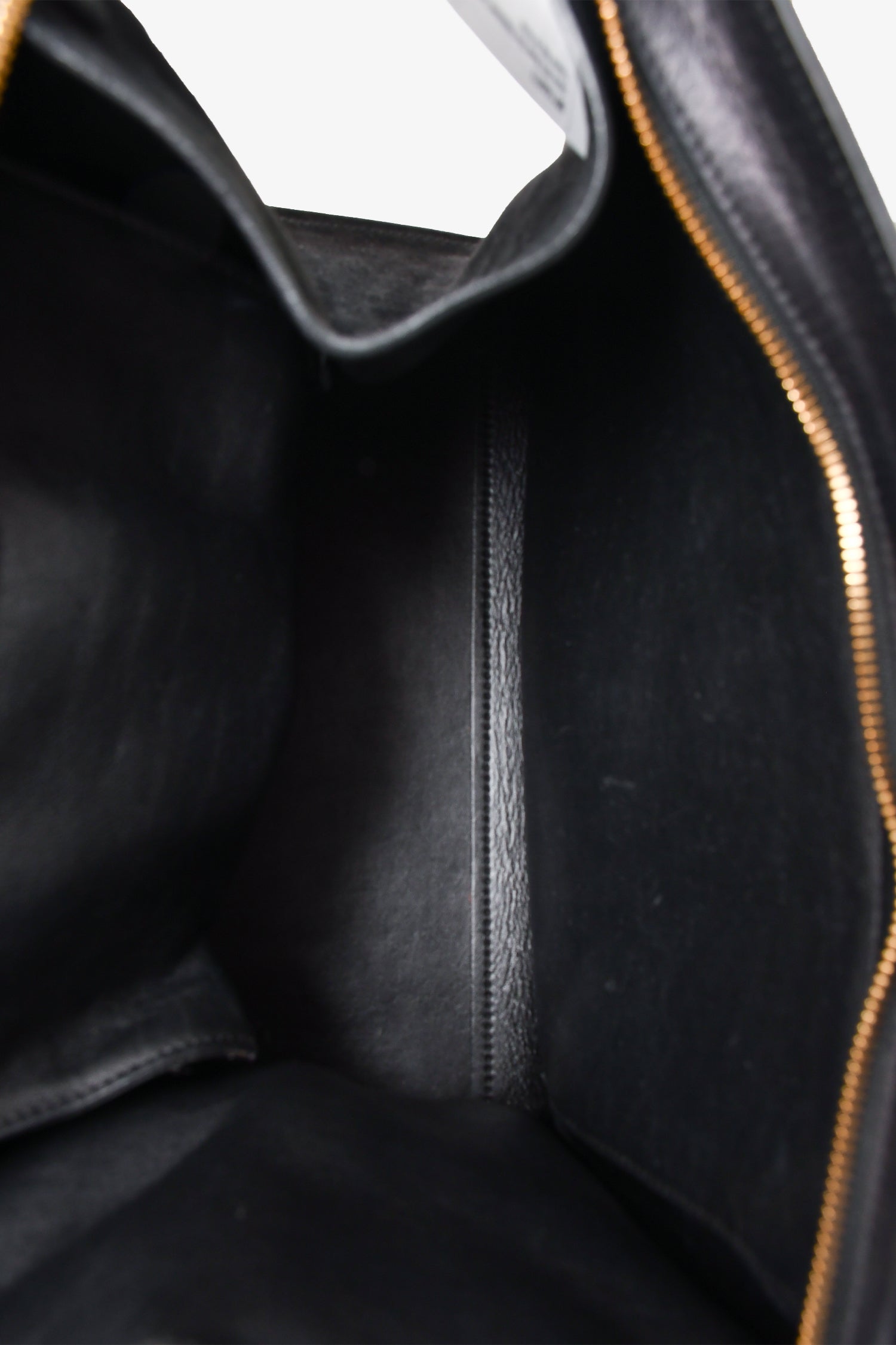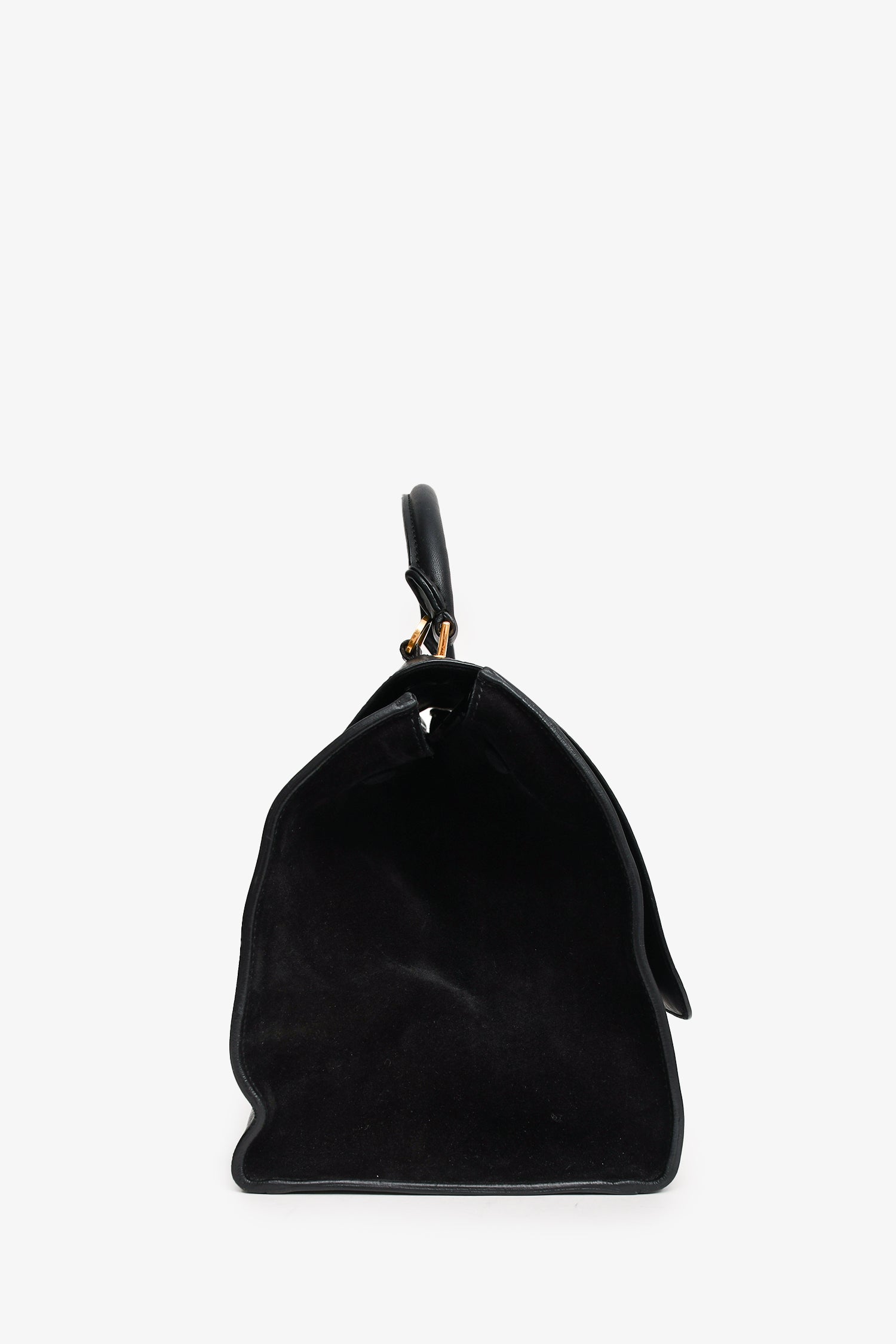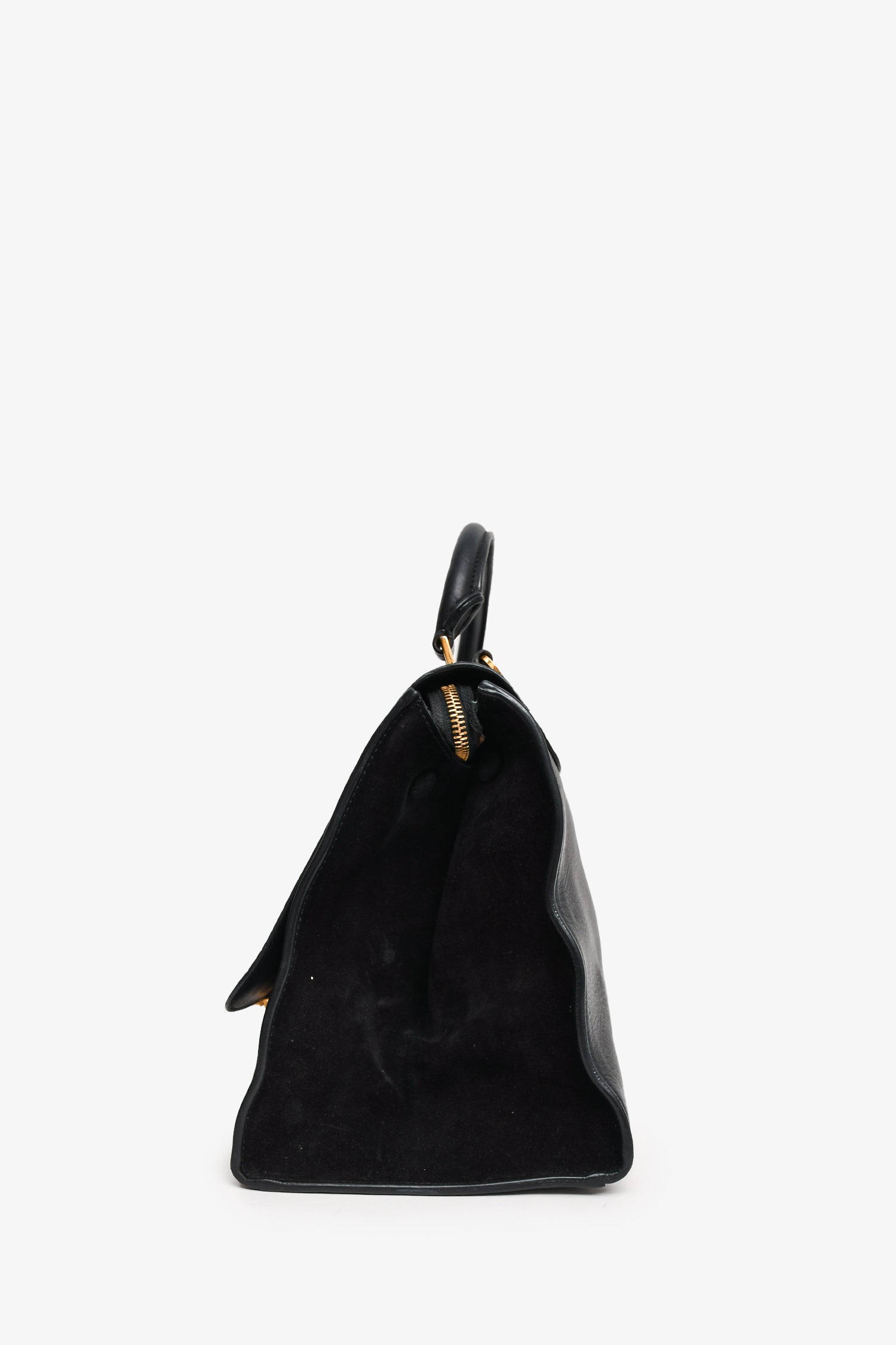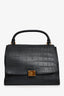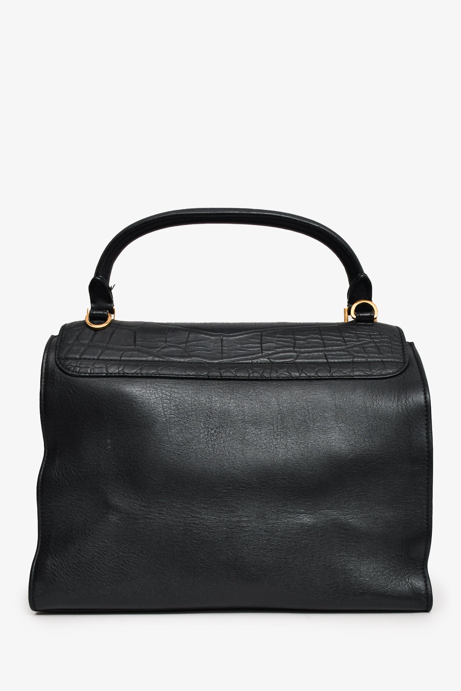 Celine 2012 Black Croc Embossed Leather Trapeze Bag with Strap