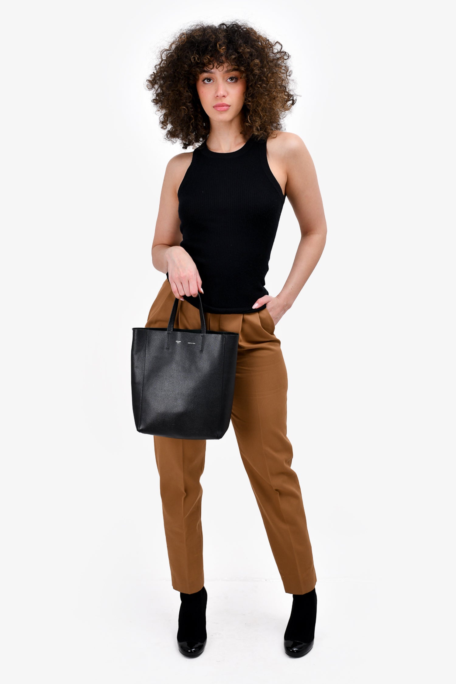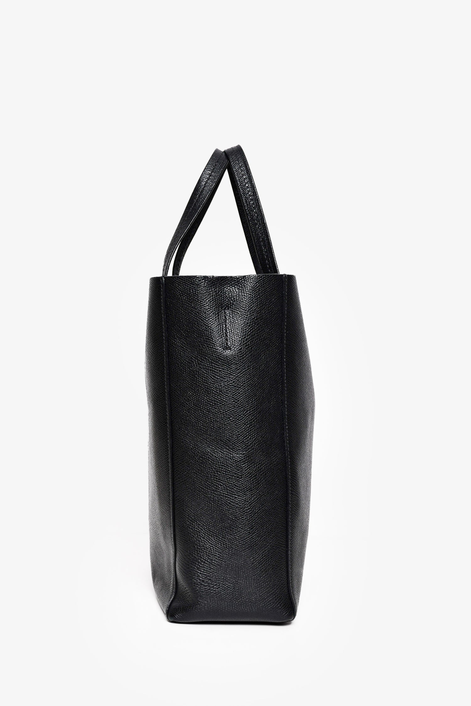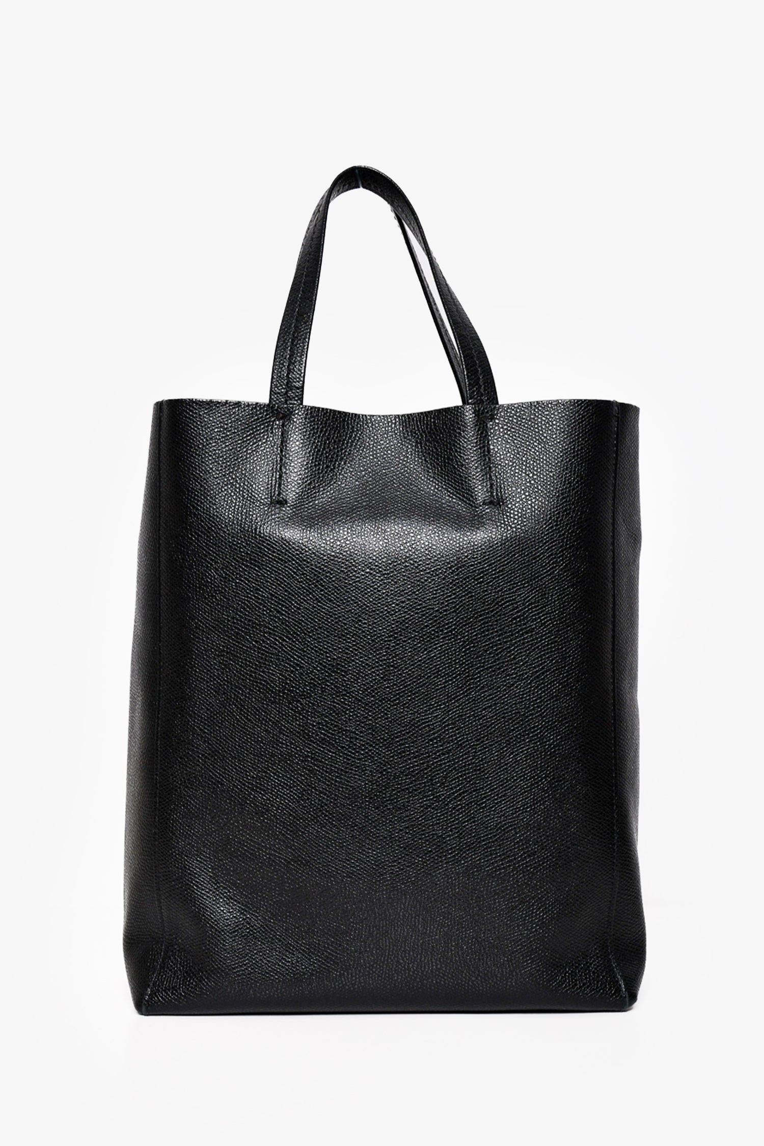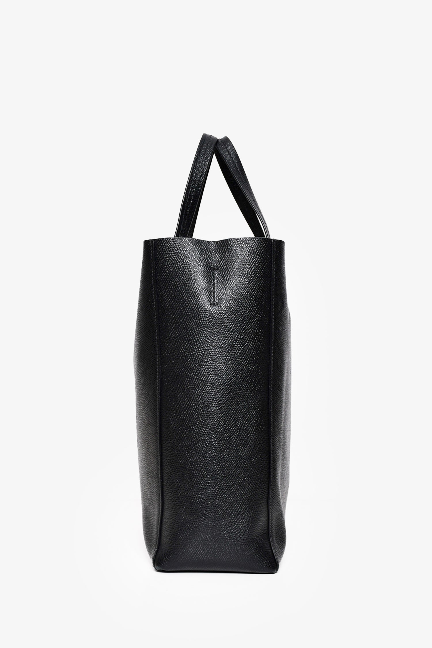 Refresh availabilityCeline 2015 Black Leather Small Vertical Cabas Bag with Strap. Dual handles. Interior wall zip pocket. Silver-tone hardware. Removable and adjustable strap.