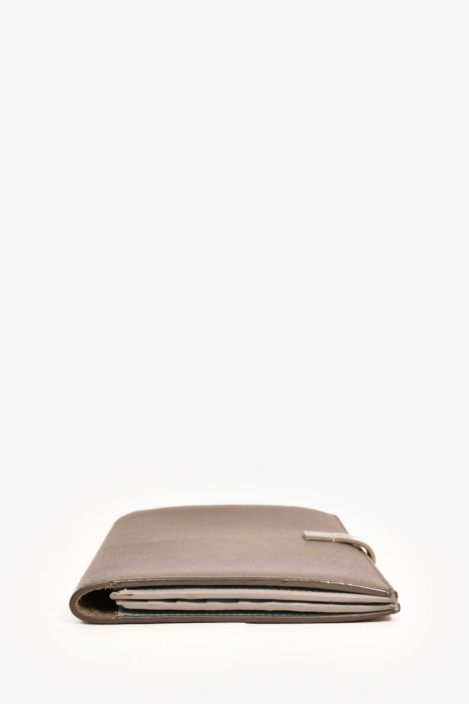 Refresh availabilityCeline 2017 Grey/Blue Leather Large Strap Wallet. Fold-over strap with a double snap closure. Two-tone grey exterior and blue interior. Silver-tone hardware. 10 card slots. 1 zipped compartment. 3 slip compartments. Bi-fold opening. Tonal stitching.