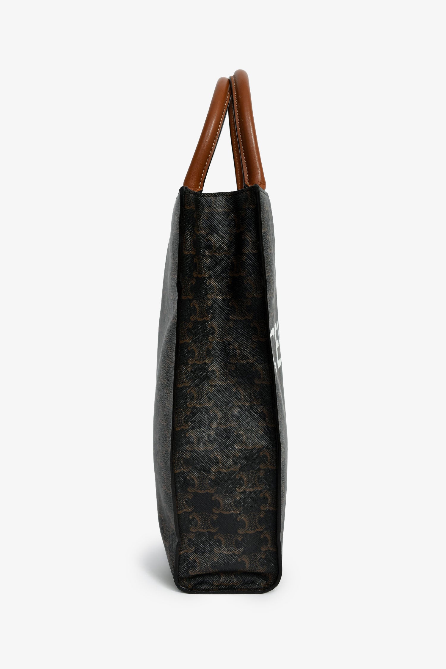 Celine 2019 Black/Brown Coated Canvas Small Triomphe Vertical Cabas Tote