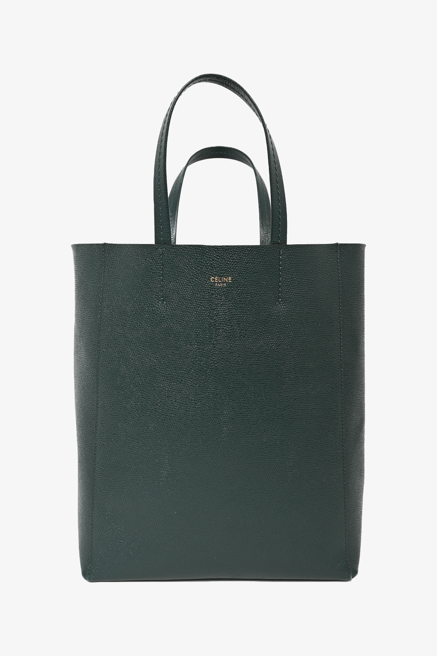 Refresh availabilityCeline 2019 Green Leather Vertical Cabas Tote. Removable cross-body strap. 1 interior zip pocket. Tonal stitching.