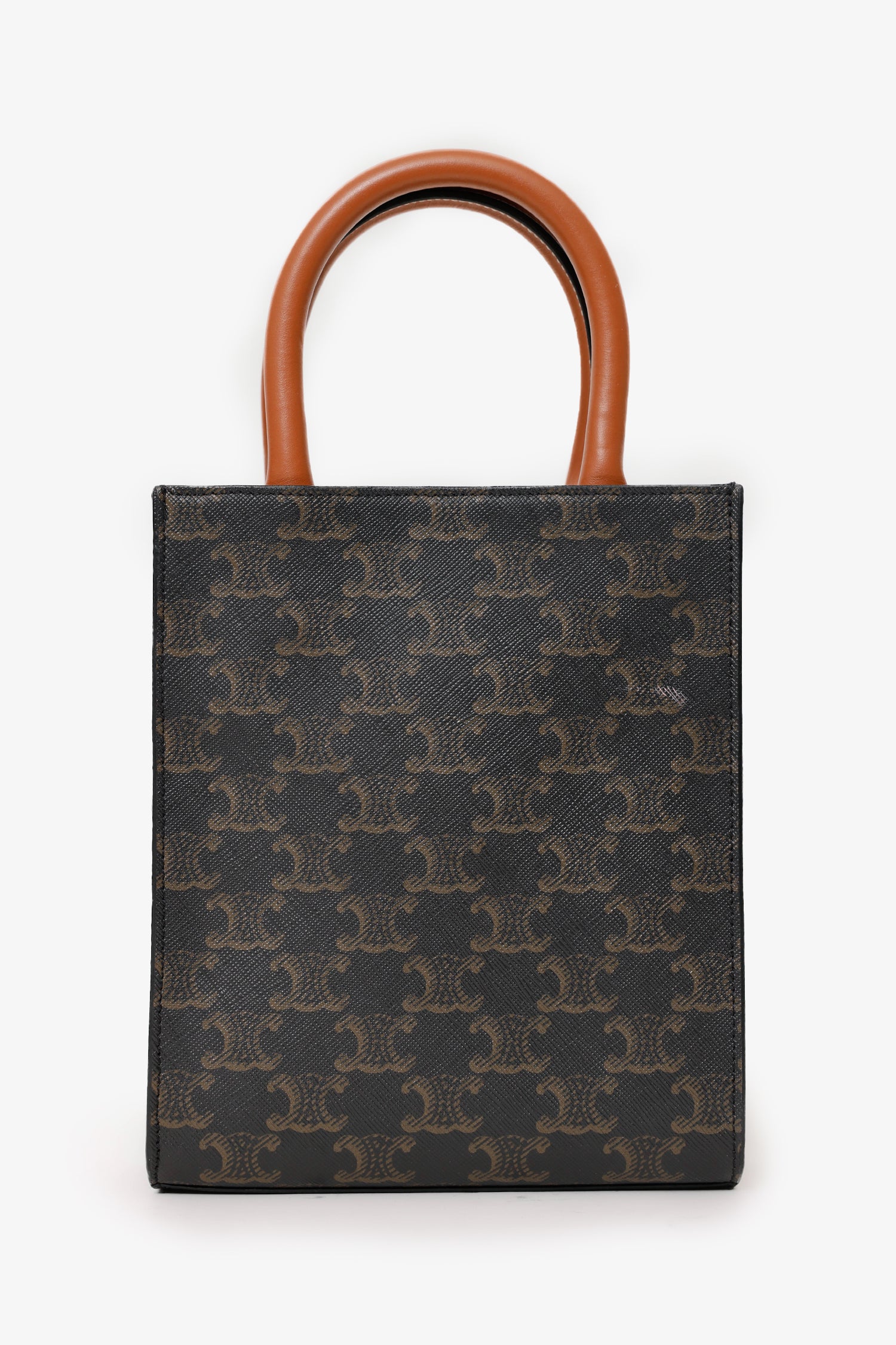 Celine 2021 Brown Canvas/Leather Mini Triomphe Vertical Cabas Tote With Strap