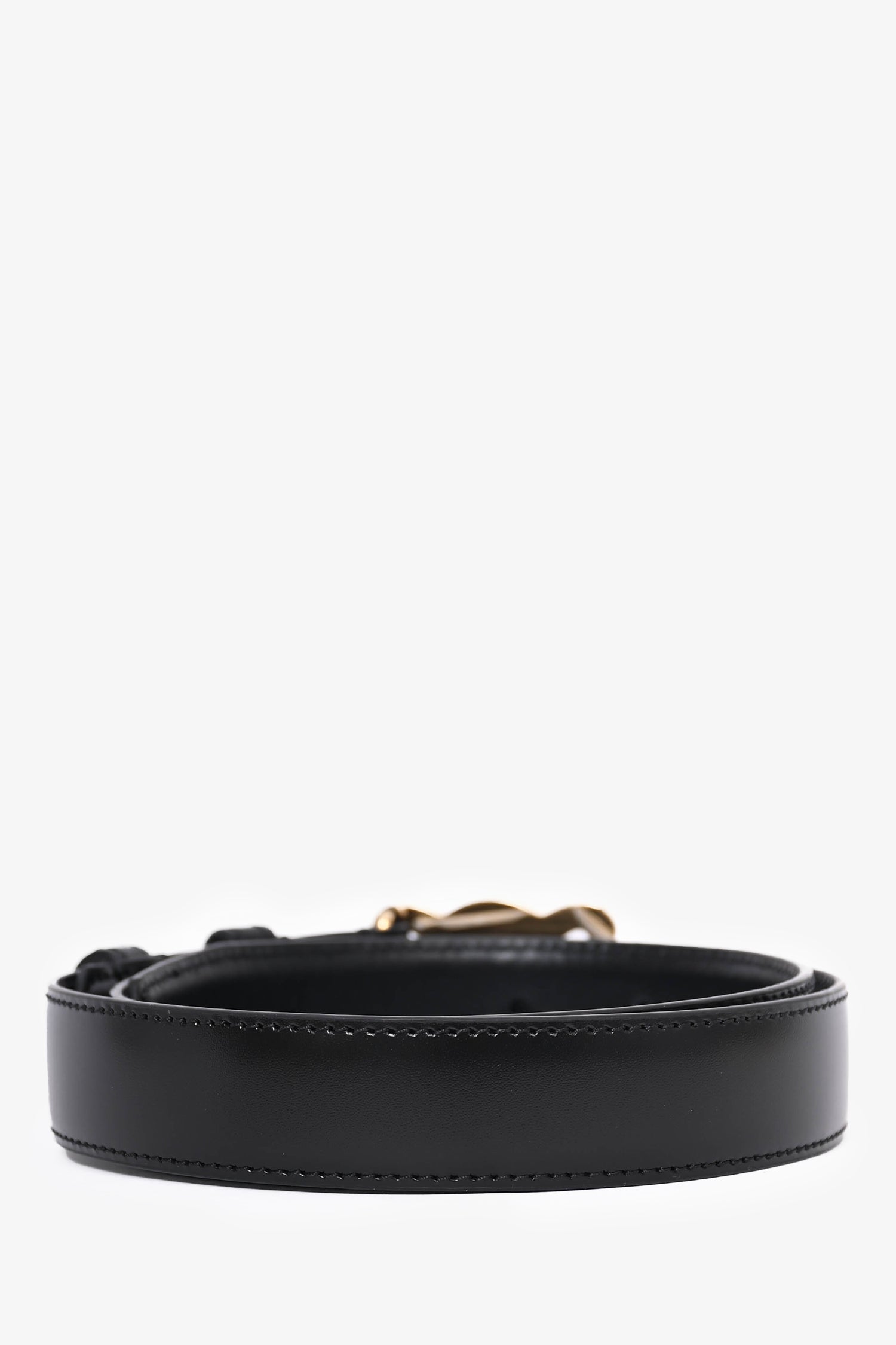Celine 2022 Black Brushed Leather Triomphe Belt Size 70