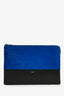 Celine Black/Blue Leather/Pony Hair Zip Clutch