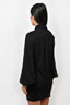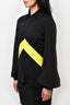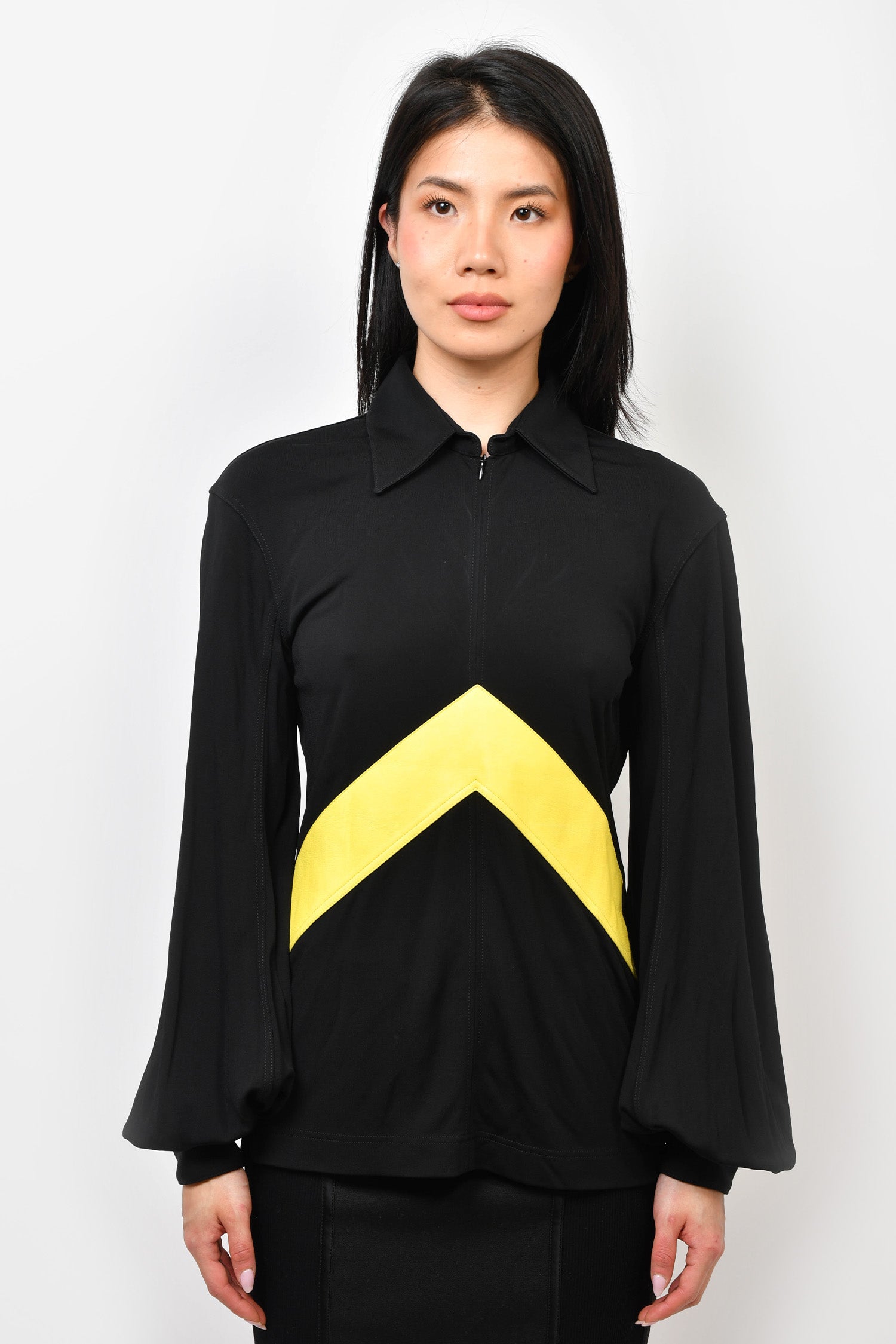 Celine Black Jersey/Yellow Leather Zip-Up Collared Top Size 38