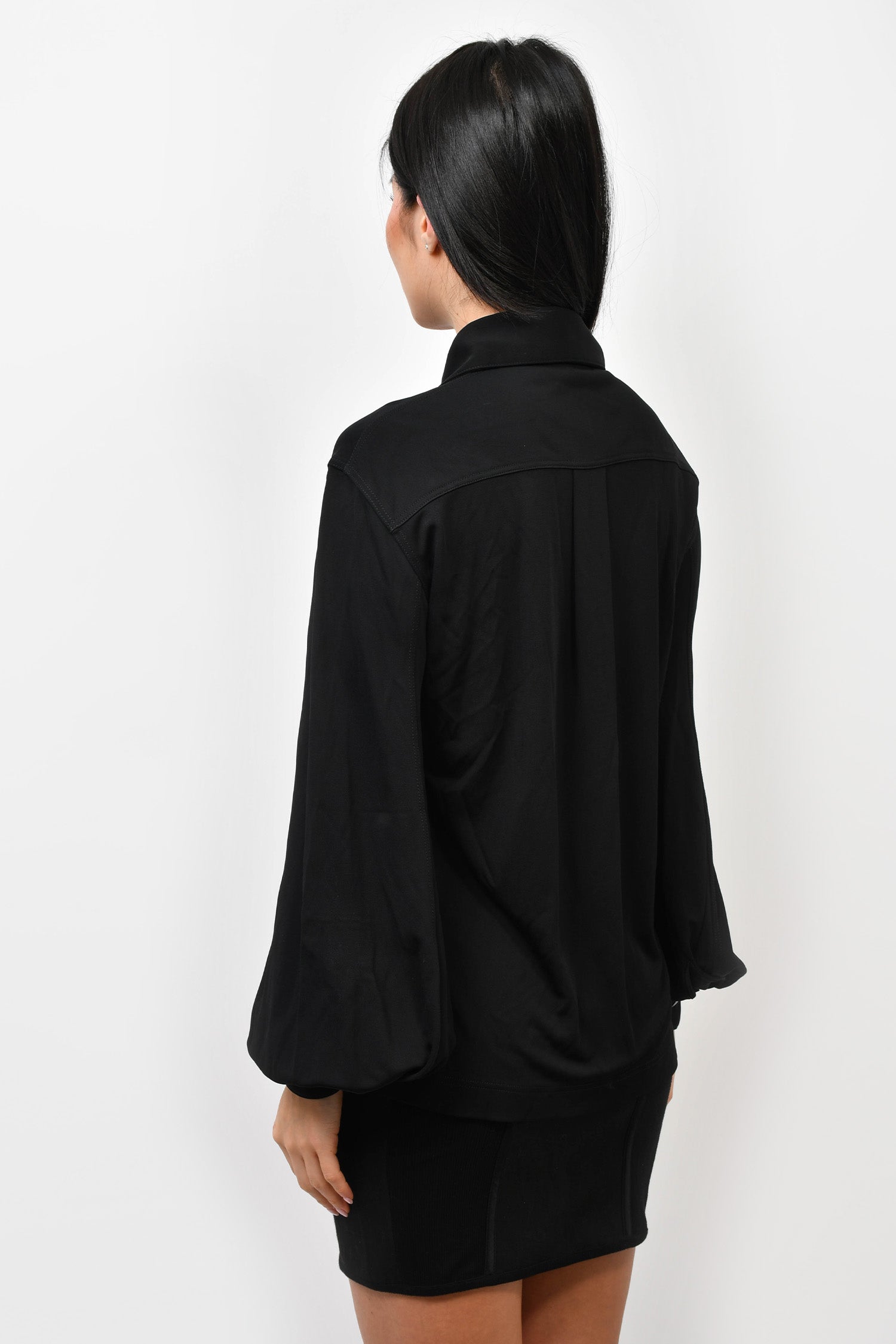 Refresh availabilityCeline Black Jersey/Yellow Leather Half-Zip Collared Top. Blouson sleeve. Tonal stitching.
