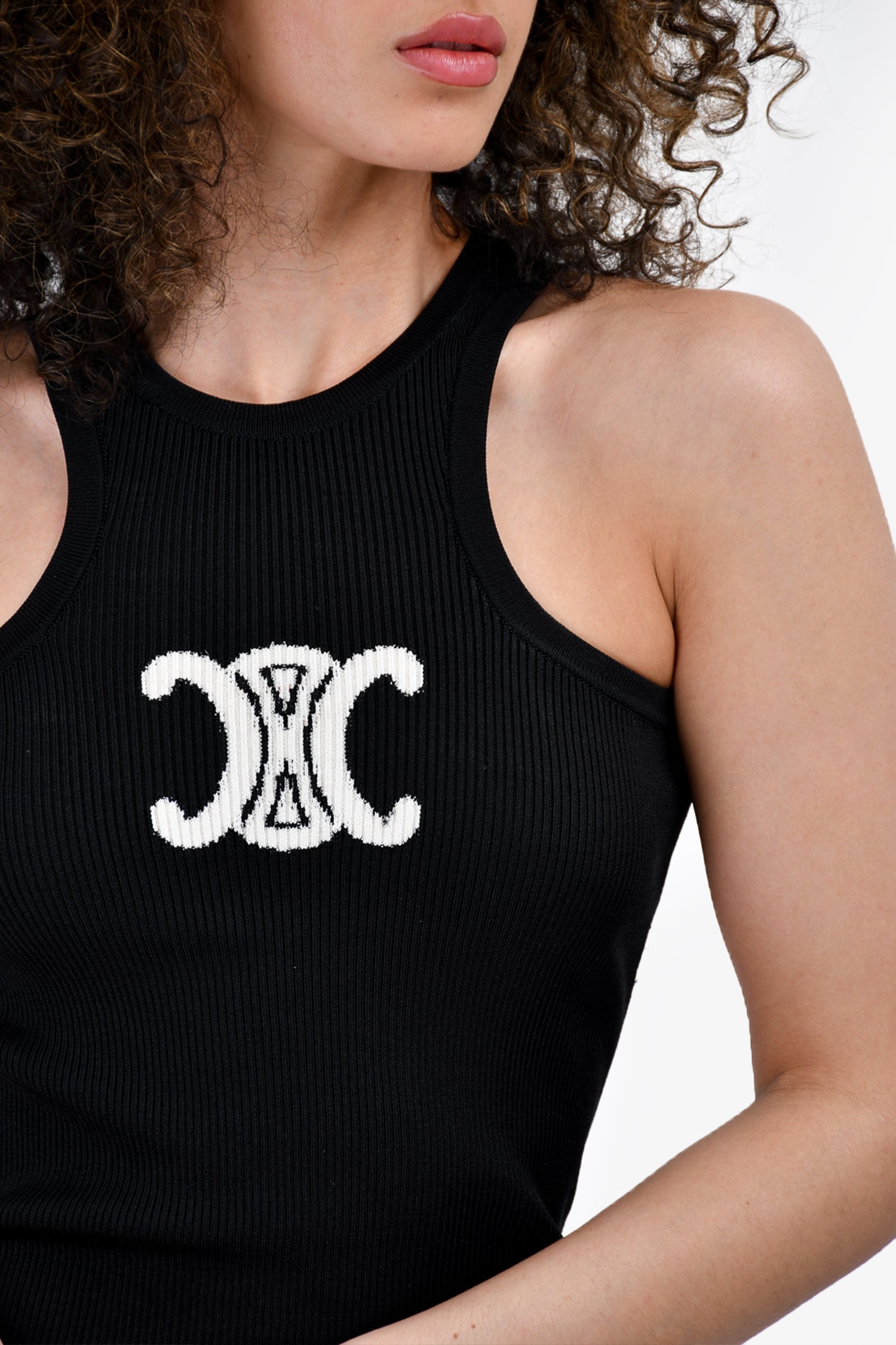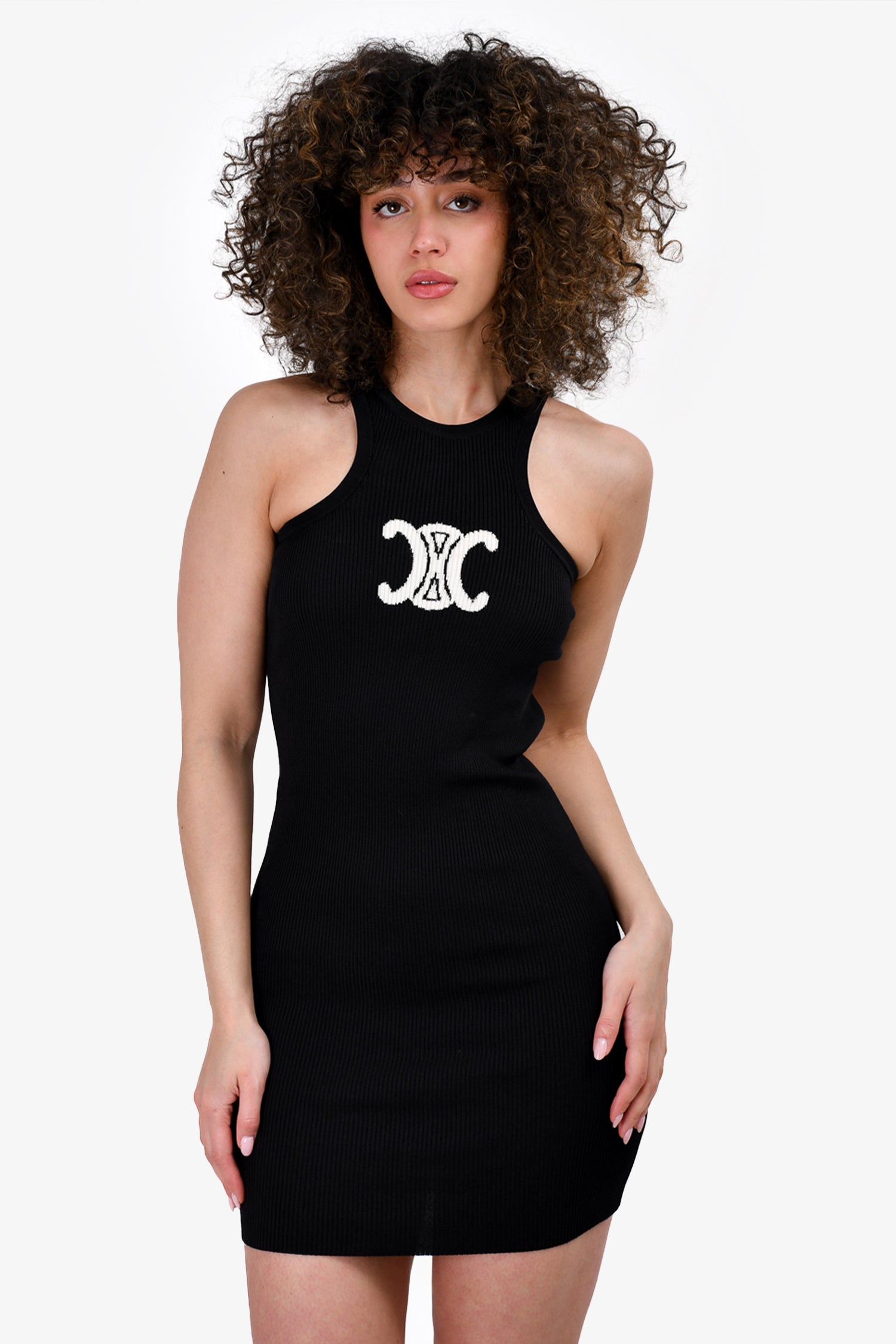 Refresh availabilityCeline Black Knit Sleeveless Triomphe Tank Dress. Round neck. Pull-on. Cut-out detail at the rear. Unlined.