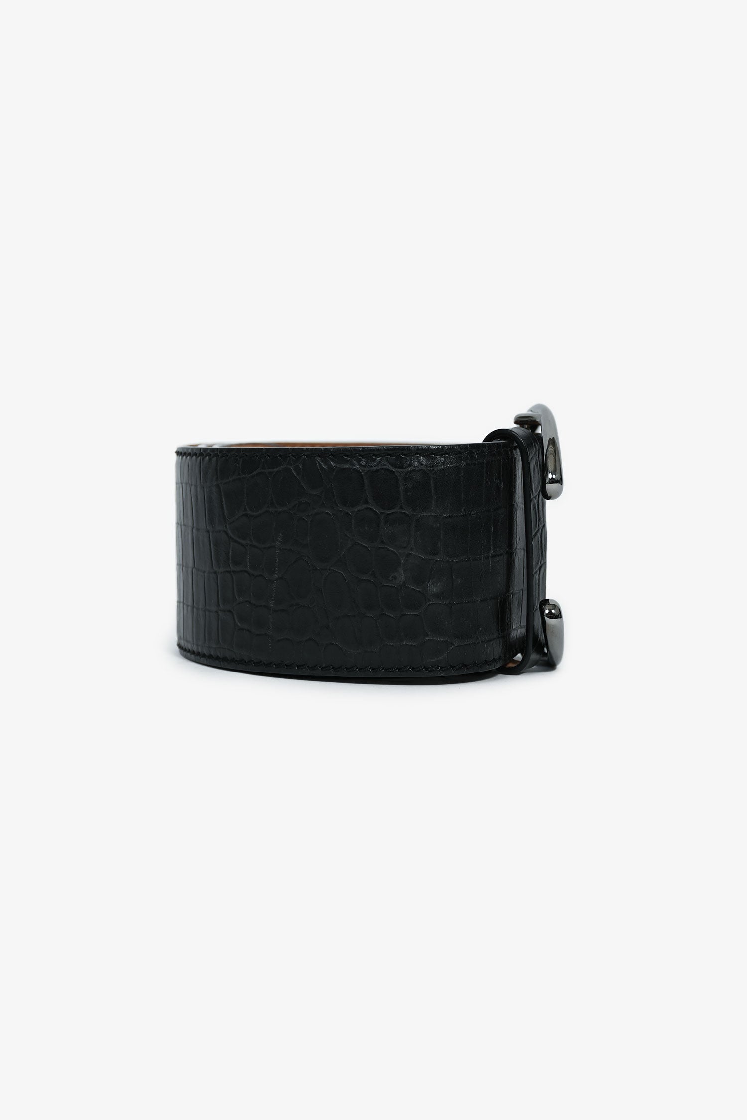 Celine Black Leather Croc Embossed Wide Belt Size L