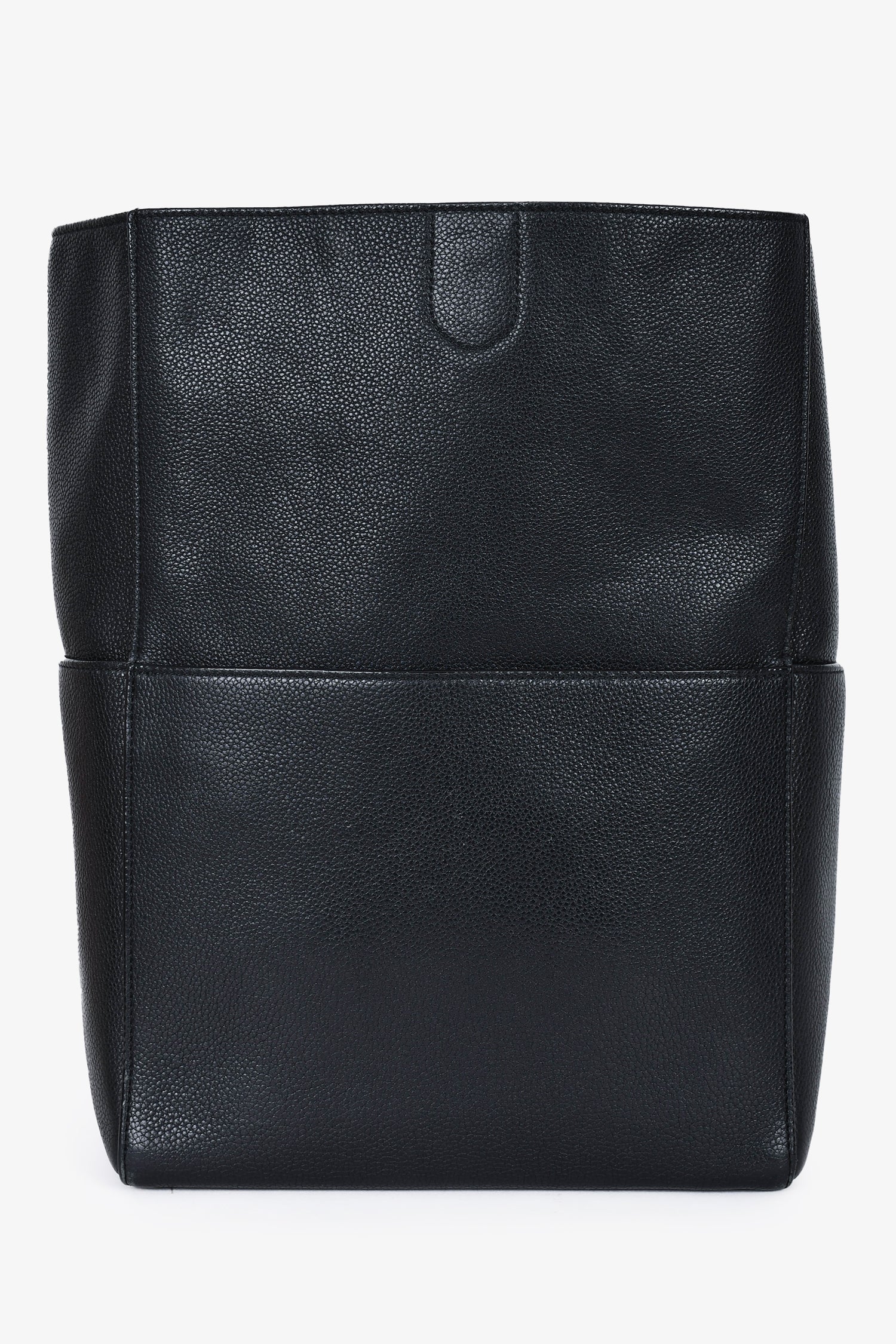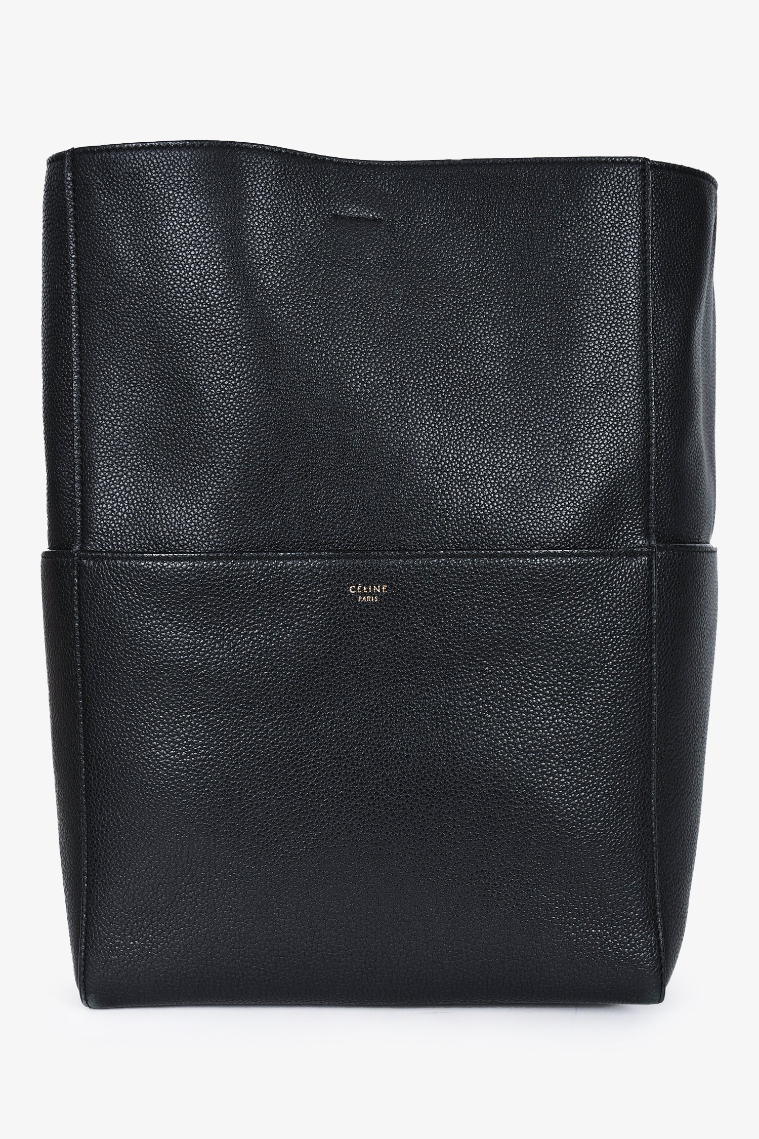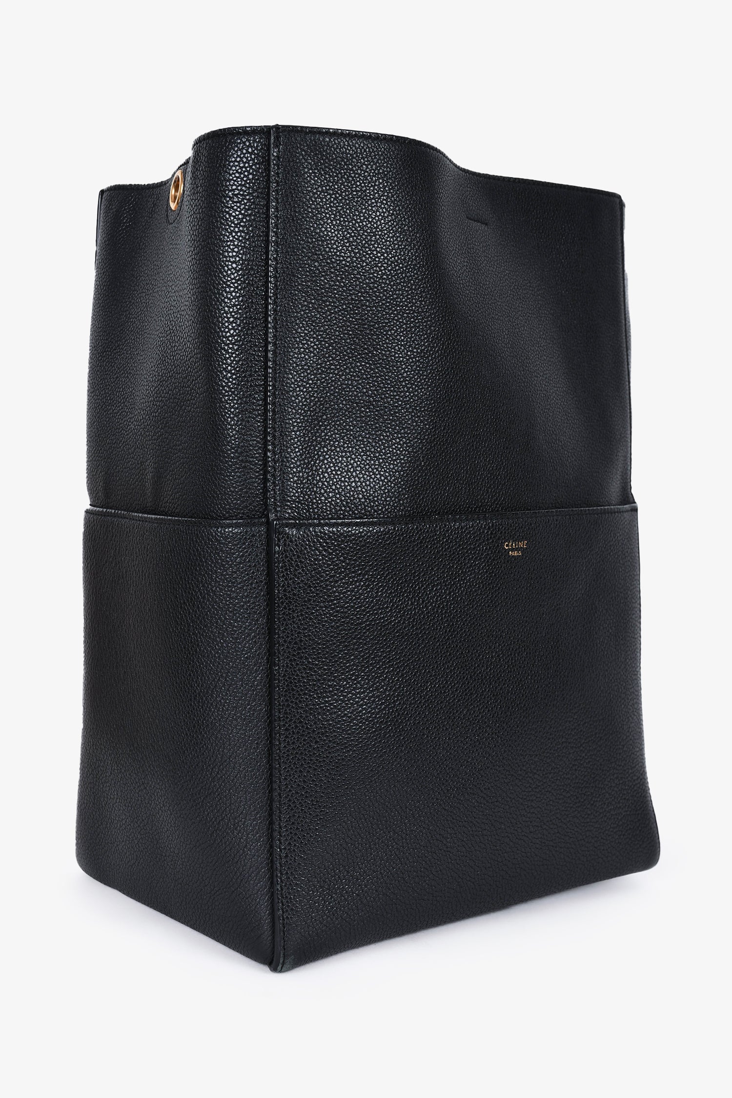 Refresh availabilityCeline Black Leather Seau Sangle Shoulder Bag. Four outside pockets. Gold-tone hardware. One interior pocket and one zipper. Loop clasp closure. Tonal stitching.