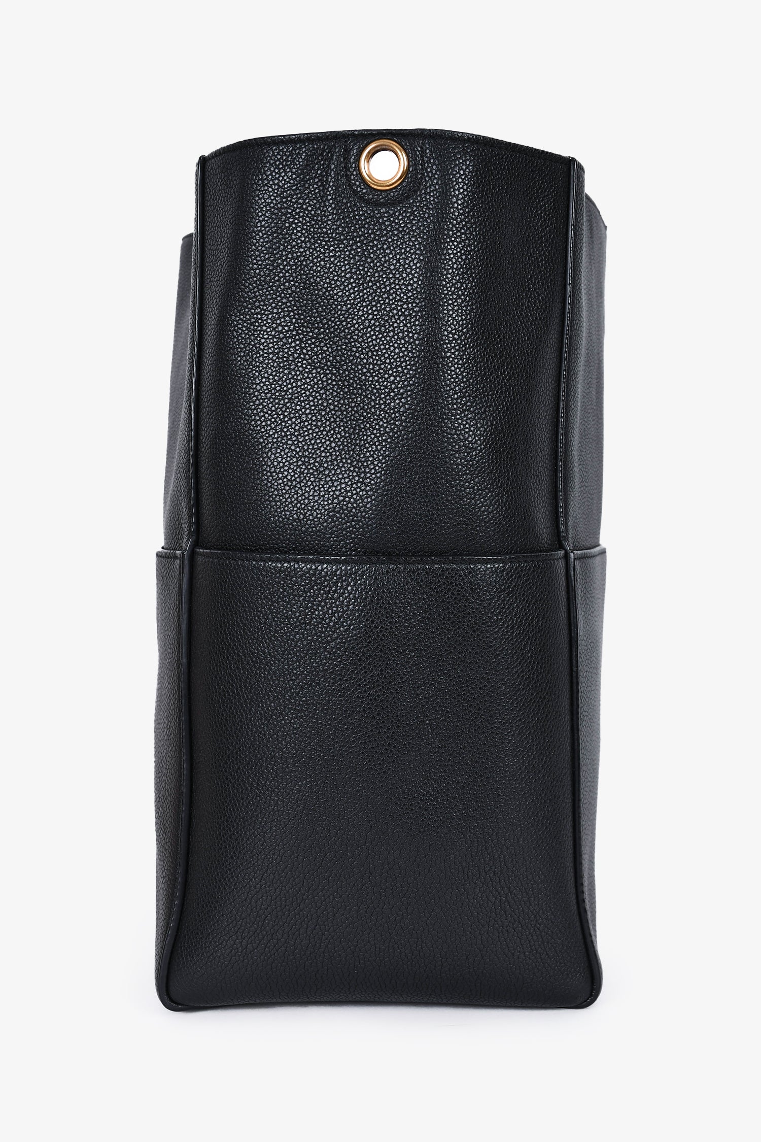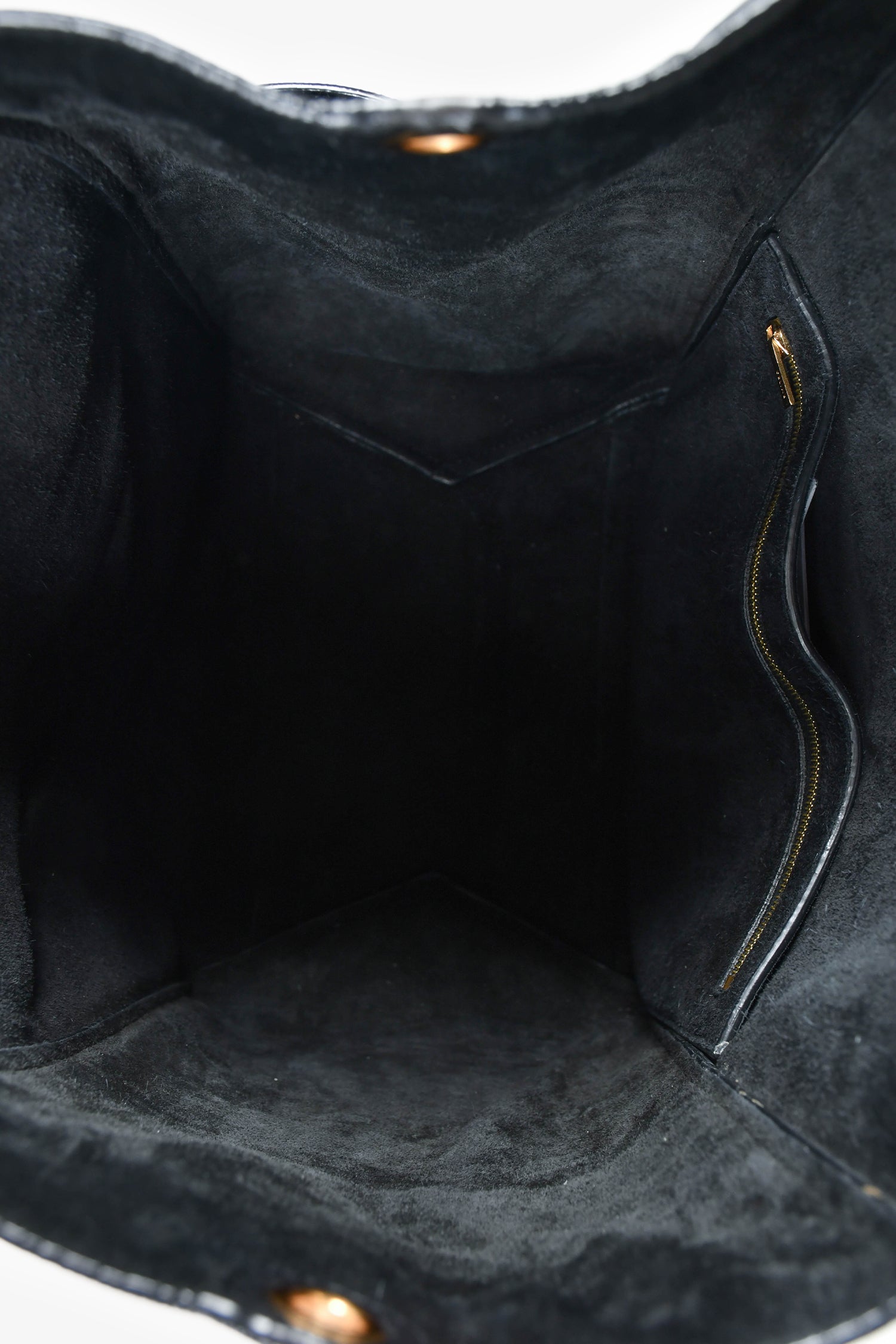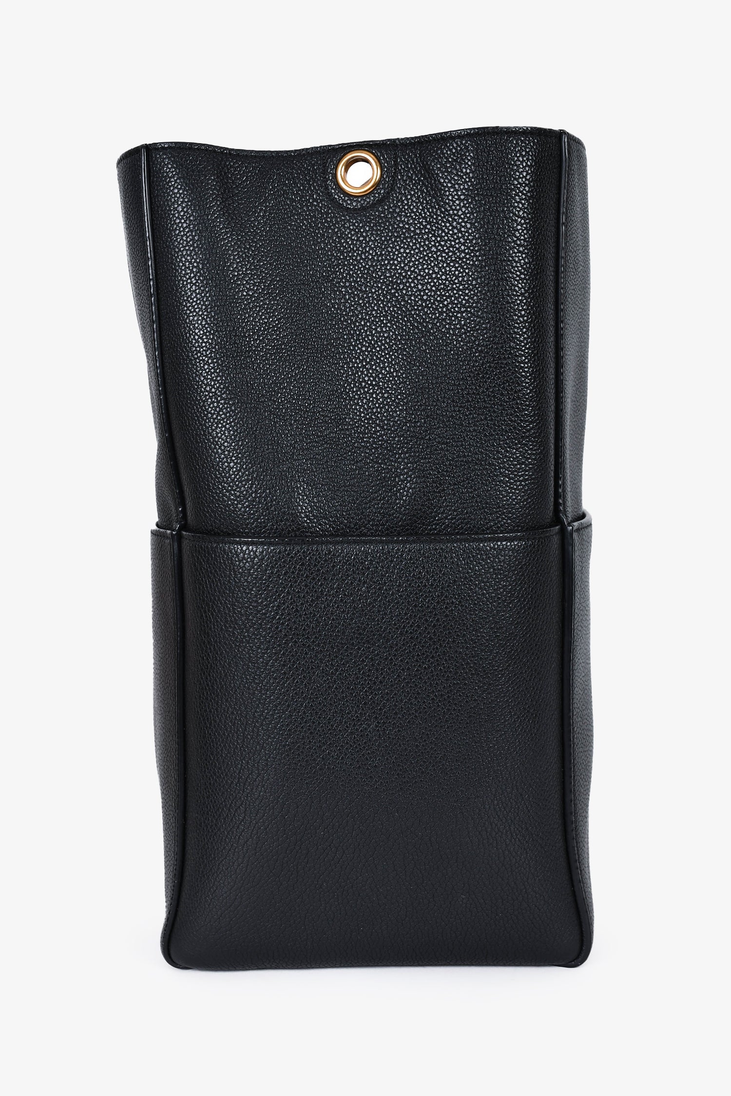 Refresh availabilityCeline Black Leather Seau Sangle Shoulder Bag. Four outside pockets. Gold-tone hardware. One interior pocket and one zipper. Loop clasp closure. Tonal stitching.